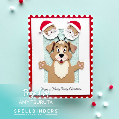 Thank you to my friends at Spellbinders for sending me some products to play with from the Sending Hugs Collection by Simon Hurley. Here’s how I was inspired today: Today’s project features the following Spellbinders products: The Darling Dog comes with a heart headband. I swapped out the hearts for the Santa’s from the Mug