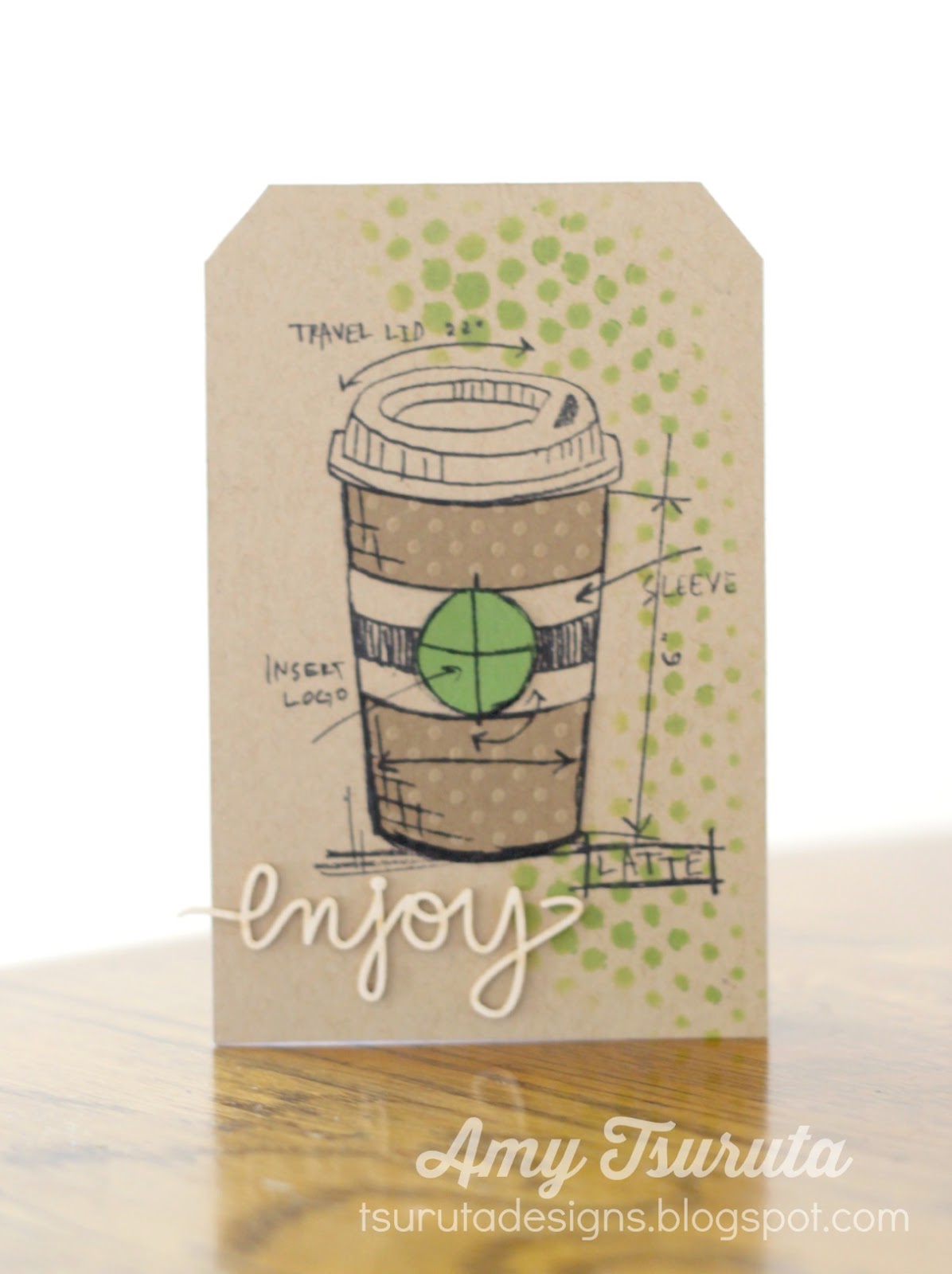 omgosh, these are SO cute, Amy! Love your fun tag shaped card bases, and love the coffee blueprint images… and that fresh green ink is to die for!! LOVE!