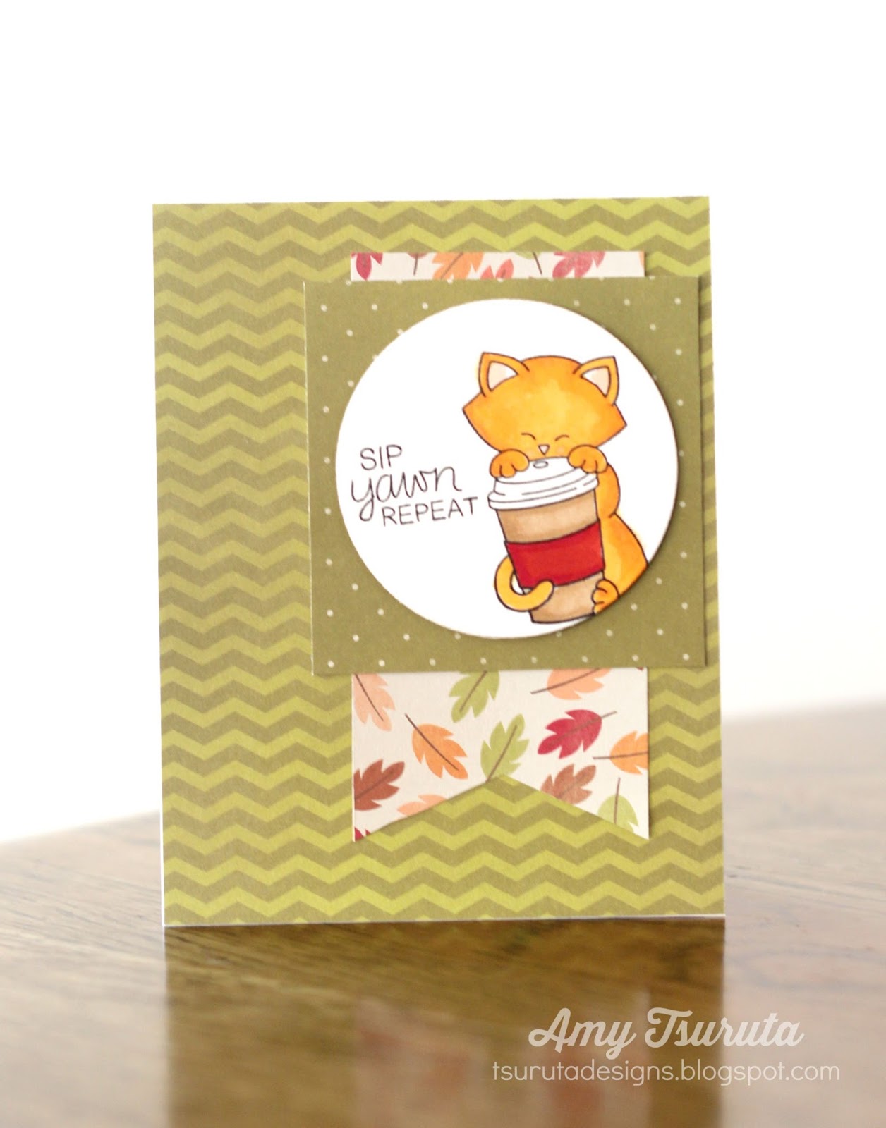 Amy – this is just too cute! This little kitty is just adorable and so perfectly colored! I love that leaf patterned paper you used too!
