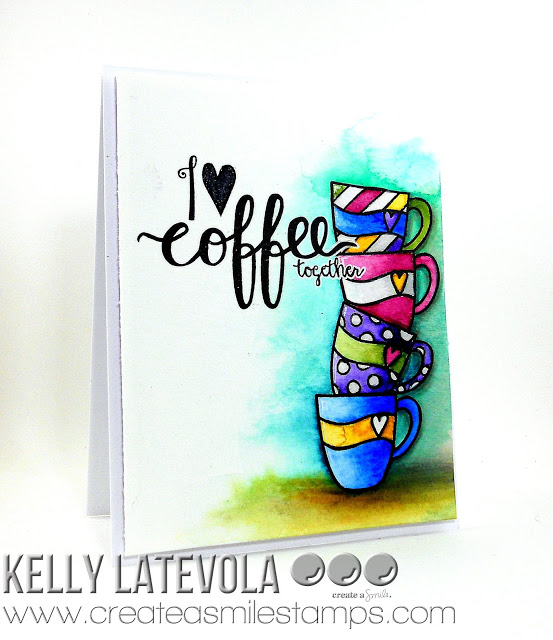 Well, you knew that there was going to be at least one coffee card, eh?! I always love Kelly’s use of color and the masking for the stacked cups is awesome.