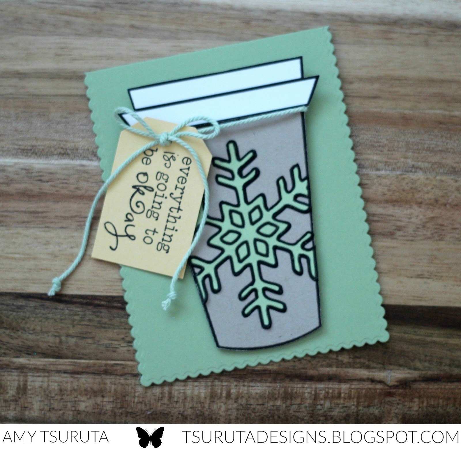 If you didn’t know, Verve is super awesome about offering up free digi’s during the Coffee Lovers Blog Hops♡ Their last one was excellent and I finally had a chance to play with them. I was super inspired by The Paper Baker’s designs, she made them big! I followed her lead but ended up popping my 4.25 cup on a scalloped base. The sentiment is the Be Okay sentiment. It’s currently on sale for $1.20!!!