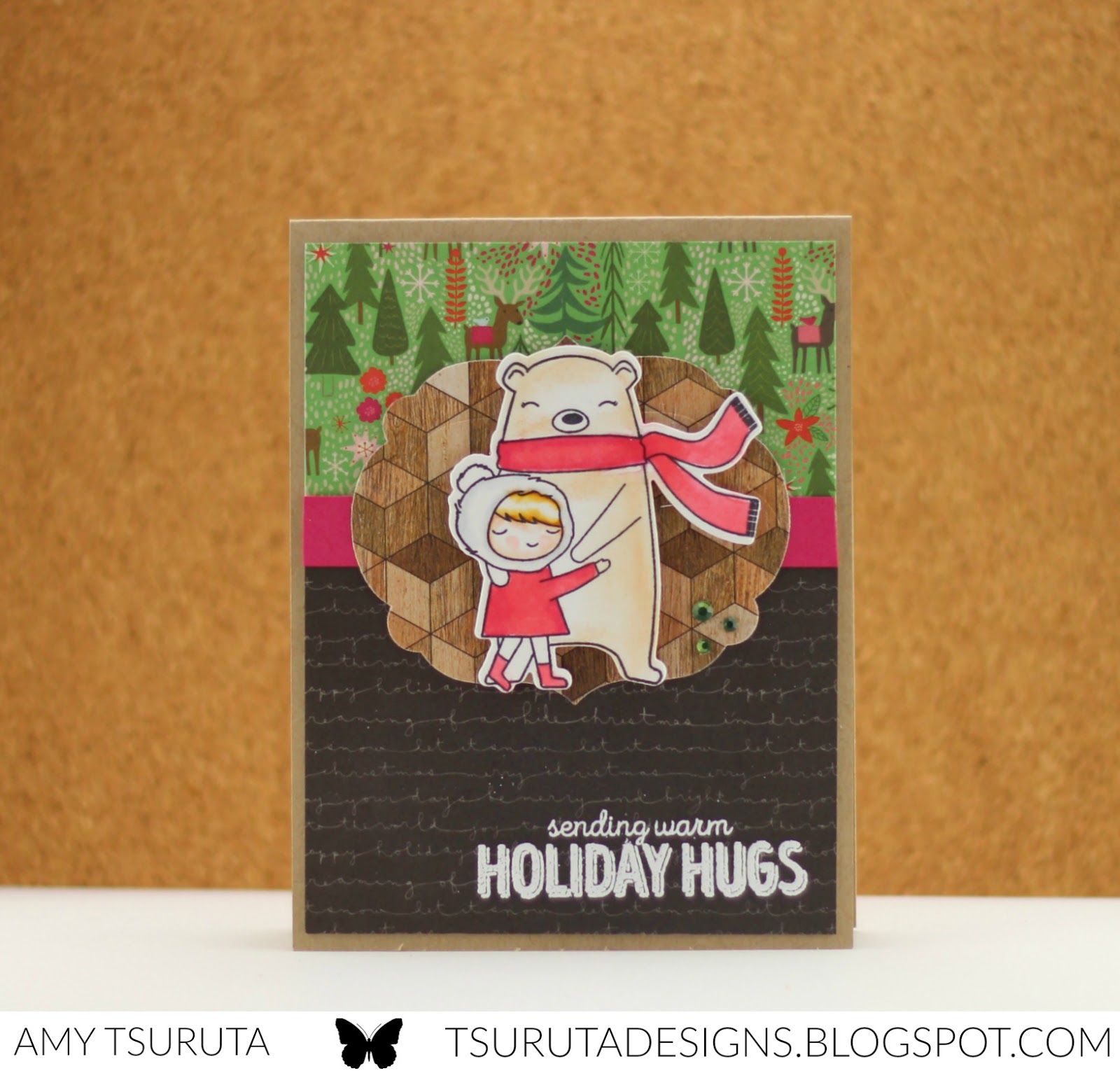 Your card is so cute, love how you play with pattern papers, and also the hidden bear… what? Because of the light and the diamond pattern your gems look like a bear face to me. Can you see it? Try tilting your head slightly to the left 🙂