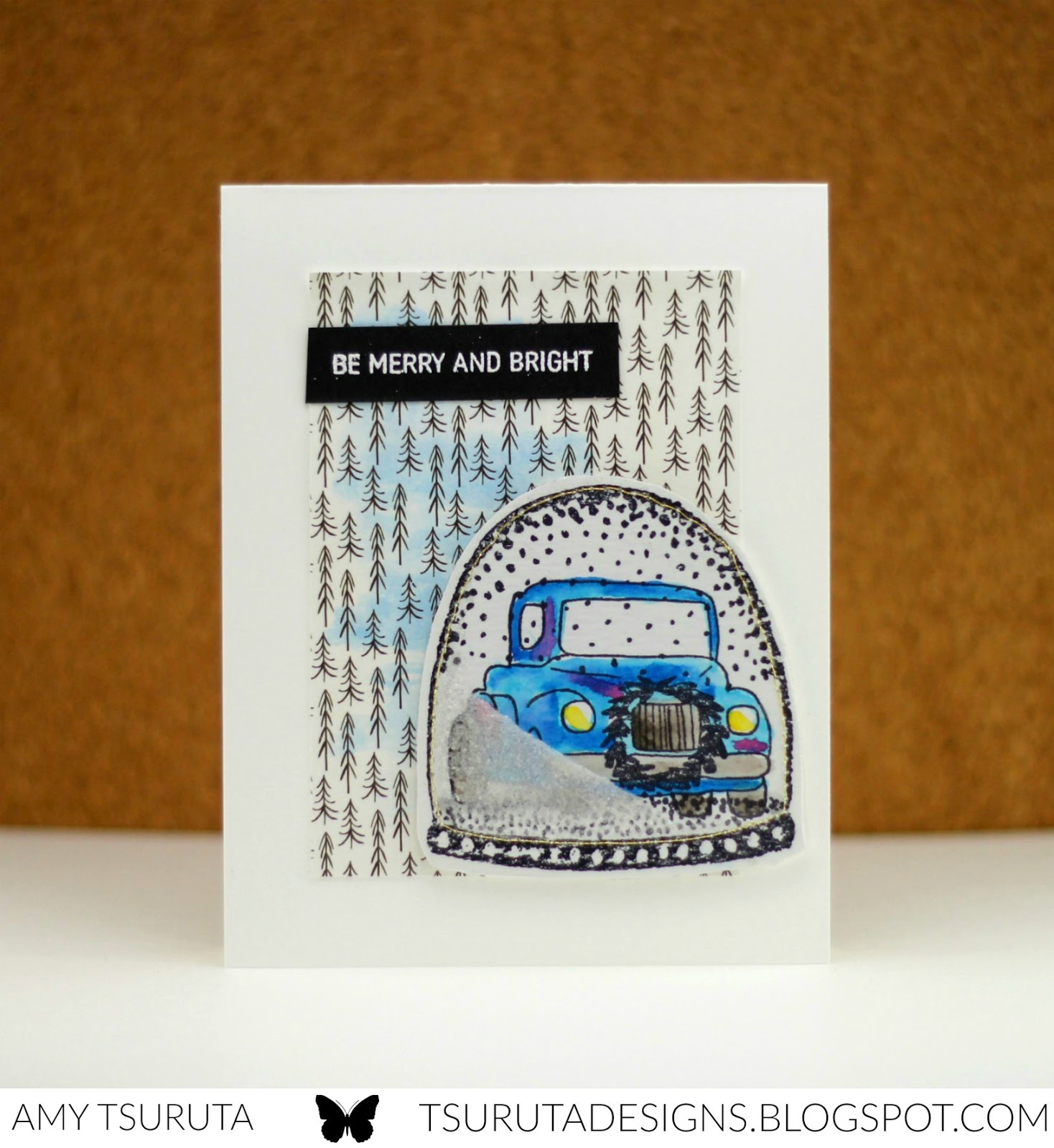 Oh now this is sweet! What a great truck image, and I love that you've put him in a snow globe. Love that Juniper Berry paper too. Such a fun card….perfect for a fella! Love it! Bev