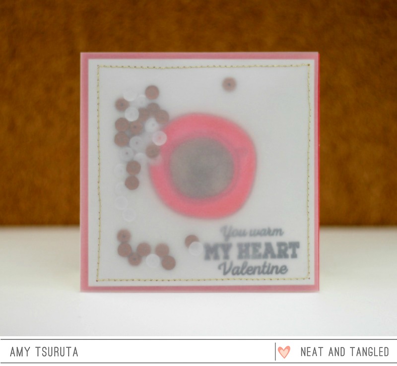 Love this shaker! The vellum makes me think of steam from a hot cup of coffee.