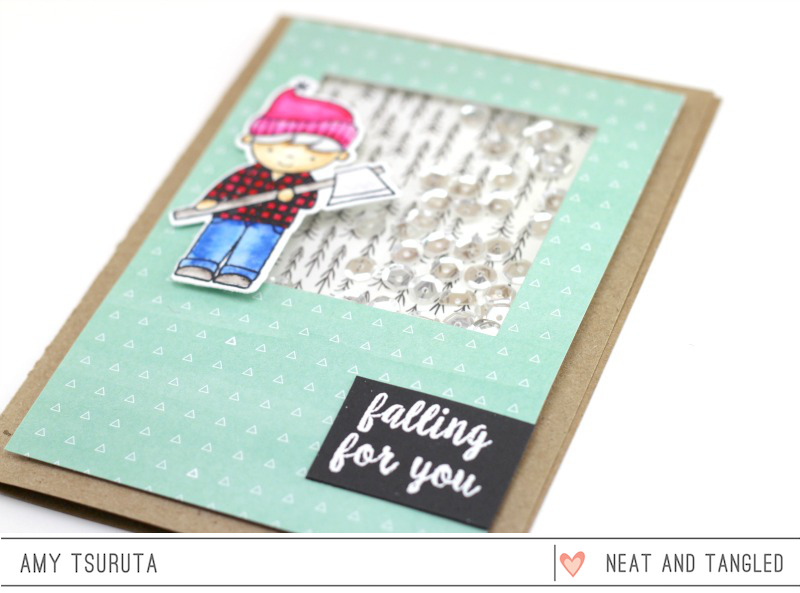 This is the cutest set by one of our newest teamies, Elena! I colored the Lumberjack with Zigs and made a shaker card with Neat & Tangled crystal clear sequins.