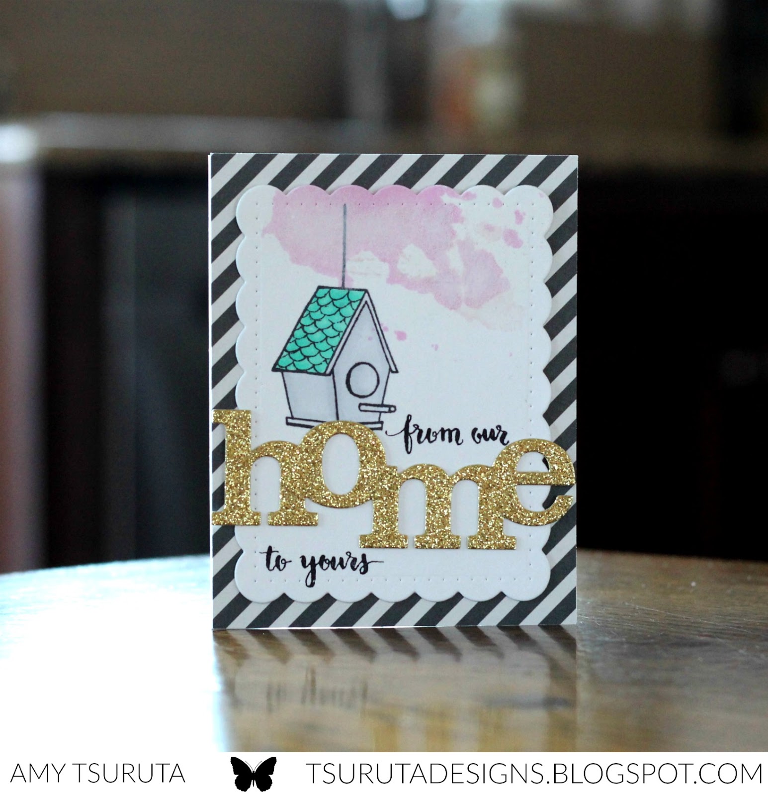 Great take on the challenge photo. I really like the pink watercoloring and the sparkly sentiment.