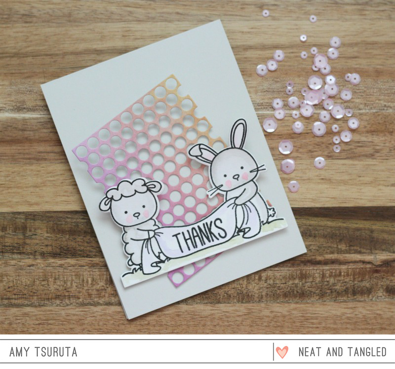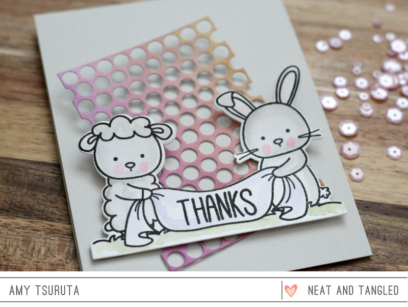 I love the way you used the ombre Punchinella die to bring soft color into this card. Of course I loved the little critter, they are the sweetest ever!