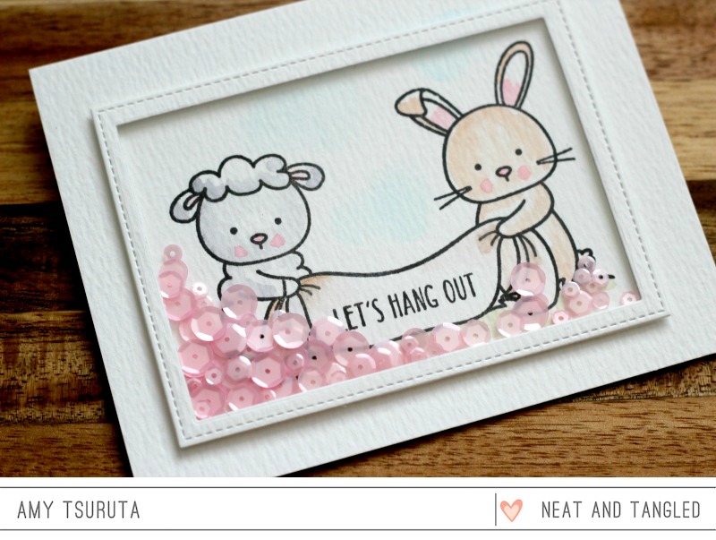 Another adorable shaker card! love these images – so pretty on the watercolor paper with the stitched edge framing! happy weekend Amy! Julia xx