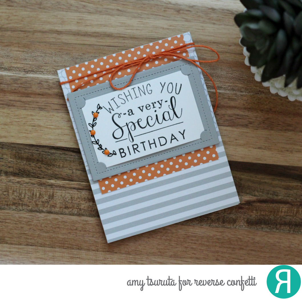 Yes to Gray + Orange! Love the fun color combo, how about you? I combined the Reverse Confetti Insta-Frame Confetti Cuts with the So Very Special Stamp Set!