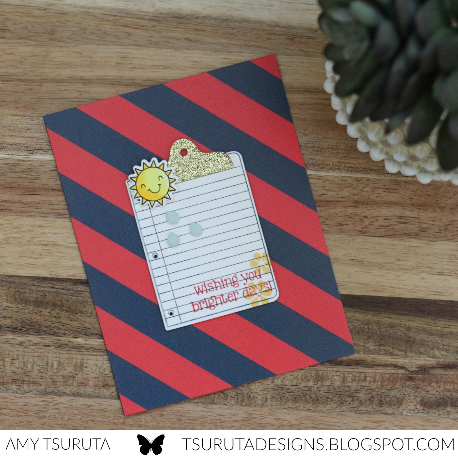 Amy, so very cute. I love all the details on the clipboard and the background is awesome, love the red and blue stripes. TFSAI