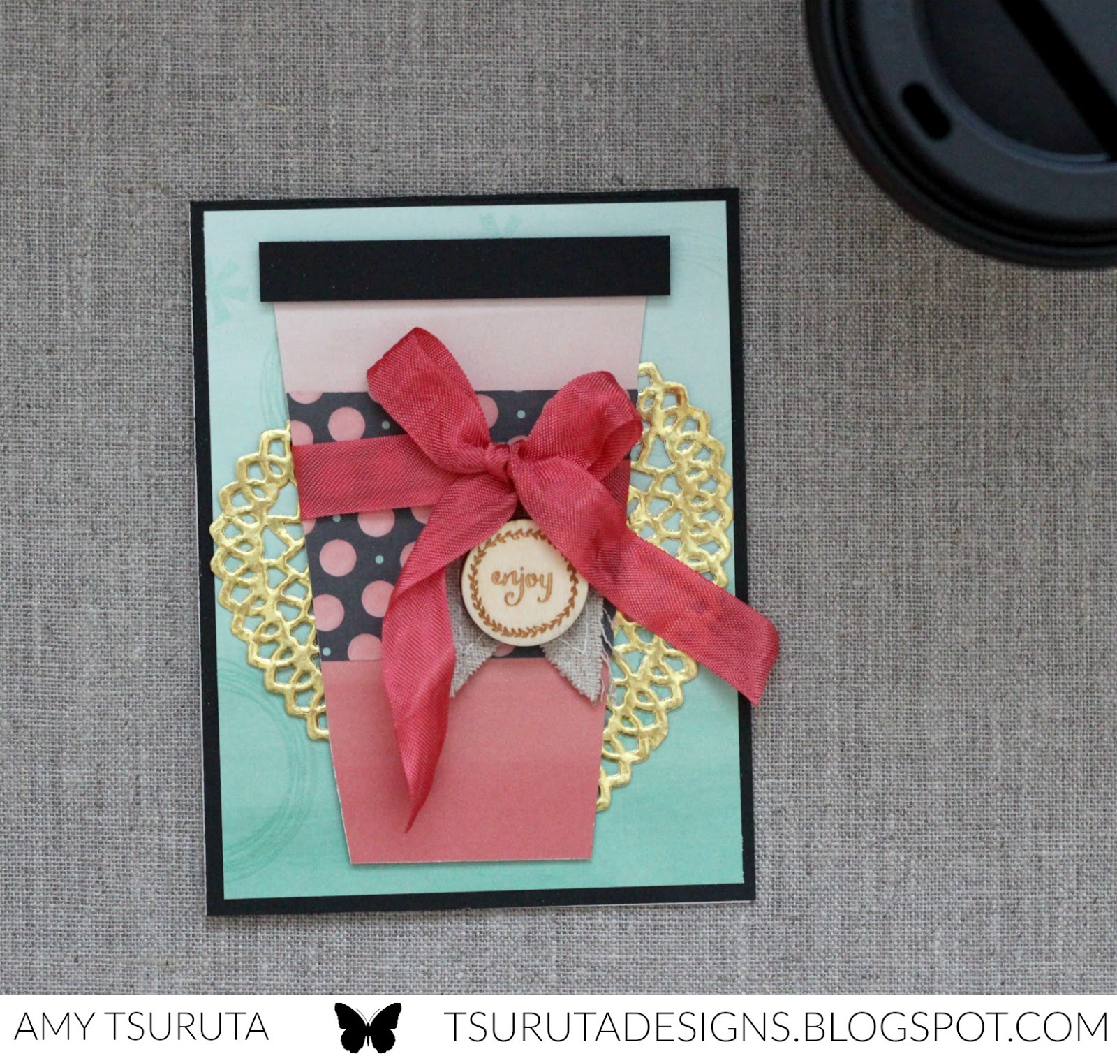 Great cards! I especially love the first one with that big coffee cup and the seam binding.