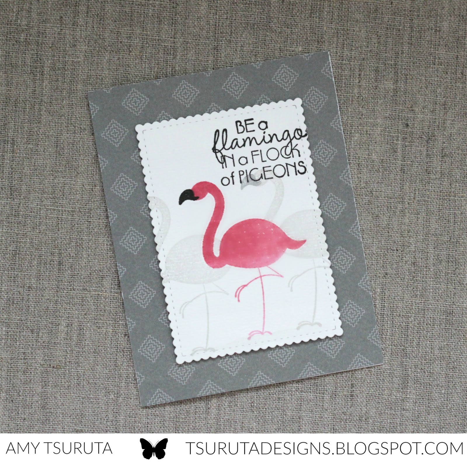 Love the flamingo card… absolutely love the "crowd" of grey flamingos in the background, love how you replicated what happens in real life – flamingos are never alone :). I've always loved bright pink and grey together. FAB card and stamp set!