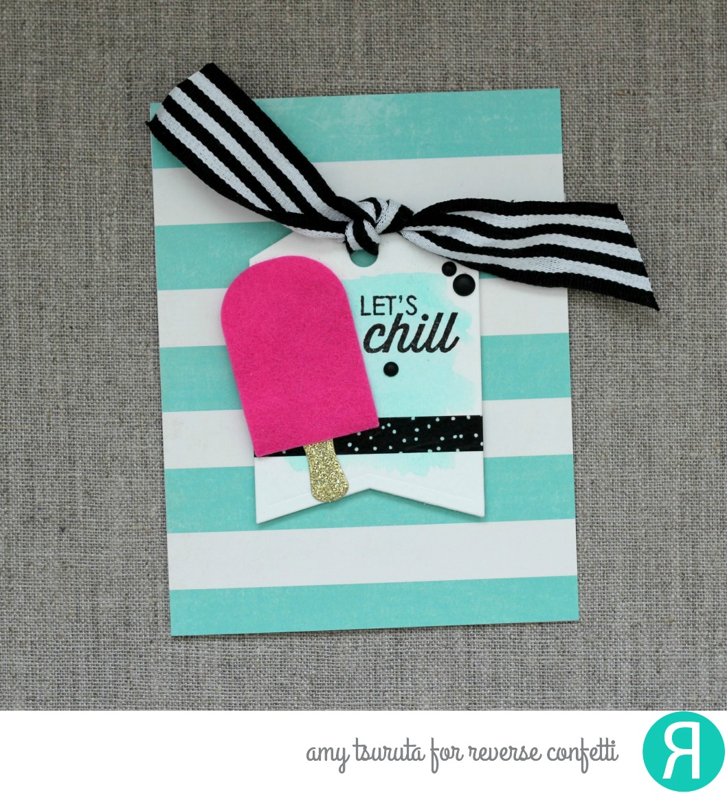 I love the Reverse Confetti Tag Me Confetti Cuts. One of my go-to tag dies. I’ve teamed it up with the oh-so-fun, Let’s Chill stamp + Confetti Cuts.