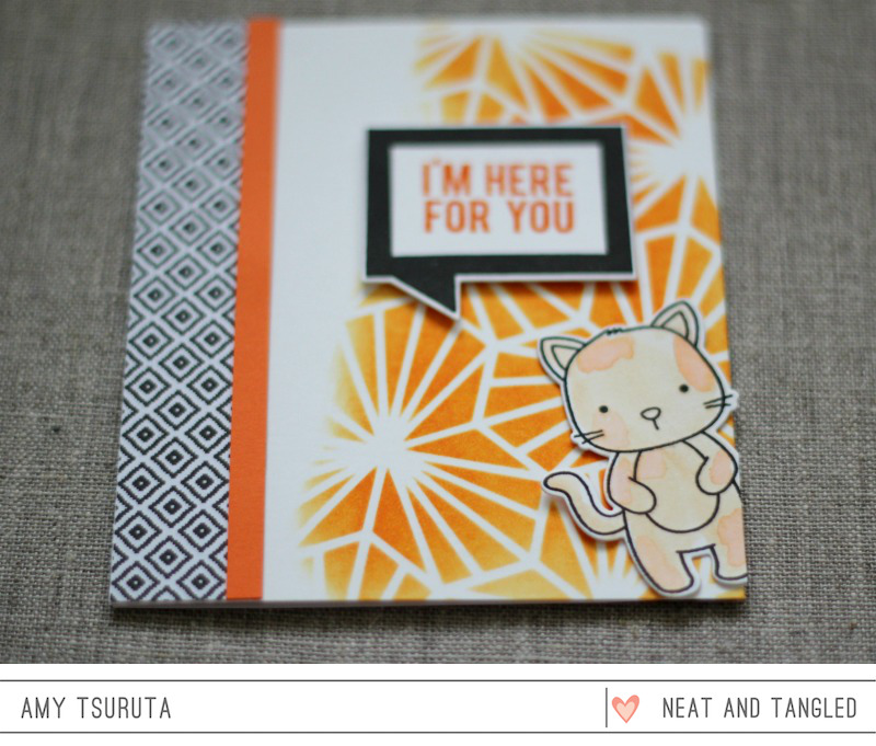 This is so stinkin' cute, Amy! Love that stenciled background and love your color combo, and your calico kitty is SO sweet! Totally <3 this!
