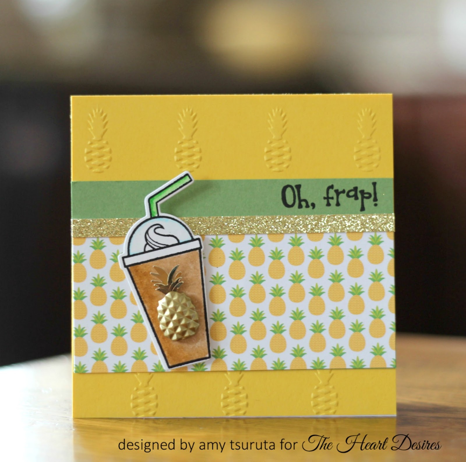 Oh Amy, I think this card is one of my all time faves of your creations! LOVE the To Go cup, patterned paper, embossing folder, glittery gold band, fun sentiment and sweet pineapple charm!