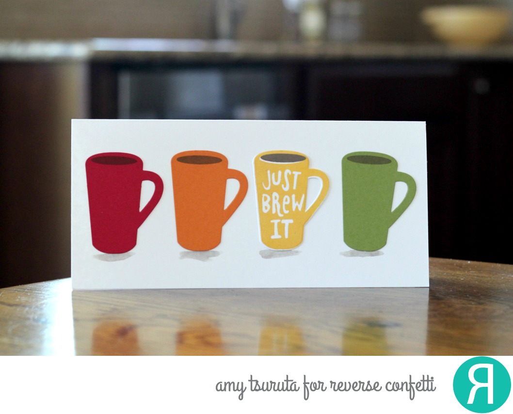 I went super clean + simple with the Just Brew It set. I stamped one of the coffee mugs and the rest I just used the coordinating confetti cut.