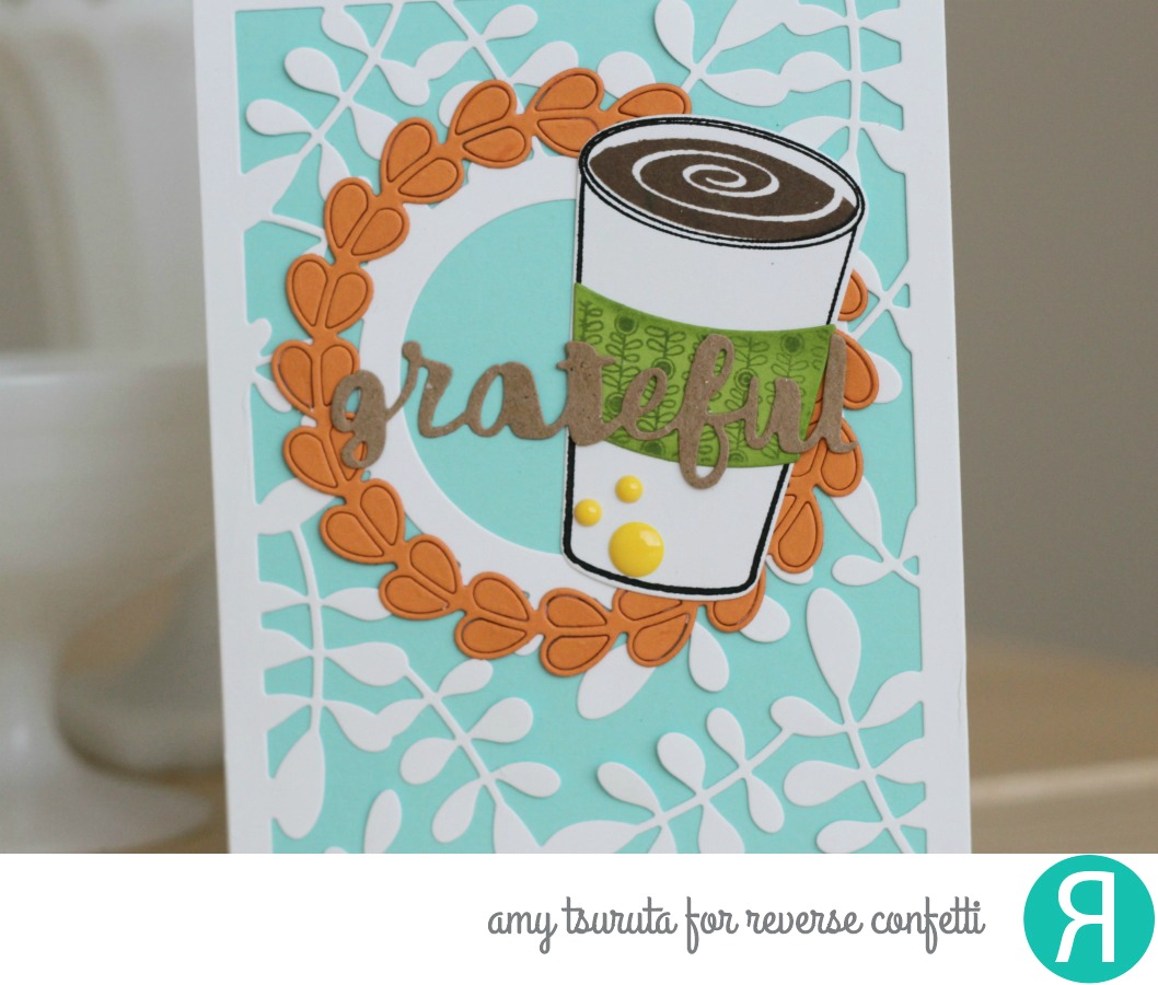 I topped everything off with an altered Grateful Thankful Blessed Confetti Cuts. I don’t know about you, but I’m pretty grateful for my morning coffee.