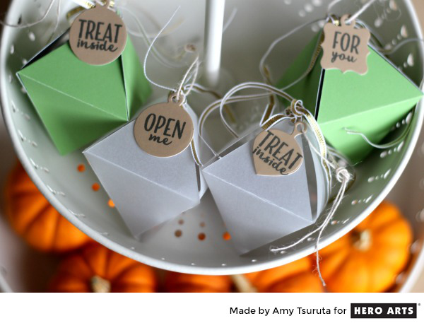 Love how you used the triangle dies on your card… so pretty! And loved the cute treat boxes with tiny tags. Adorable!