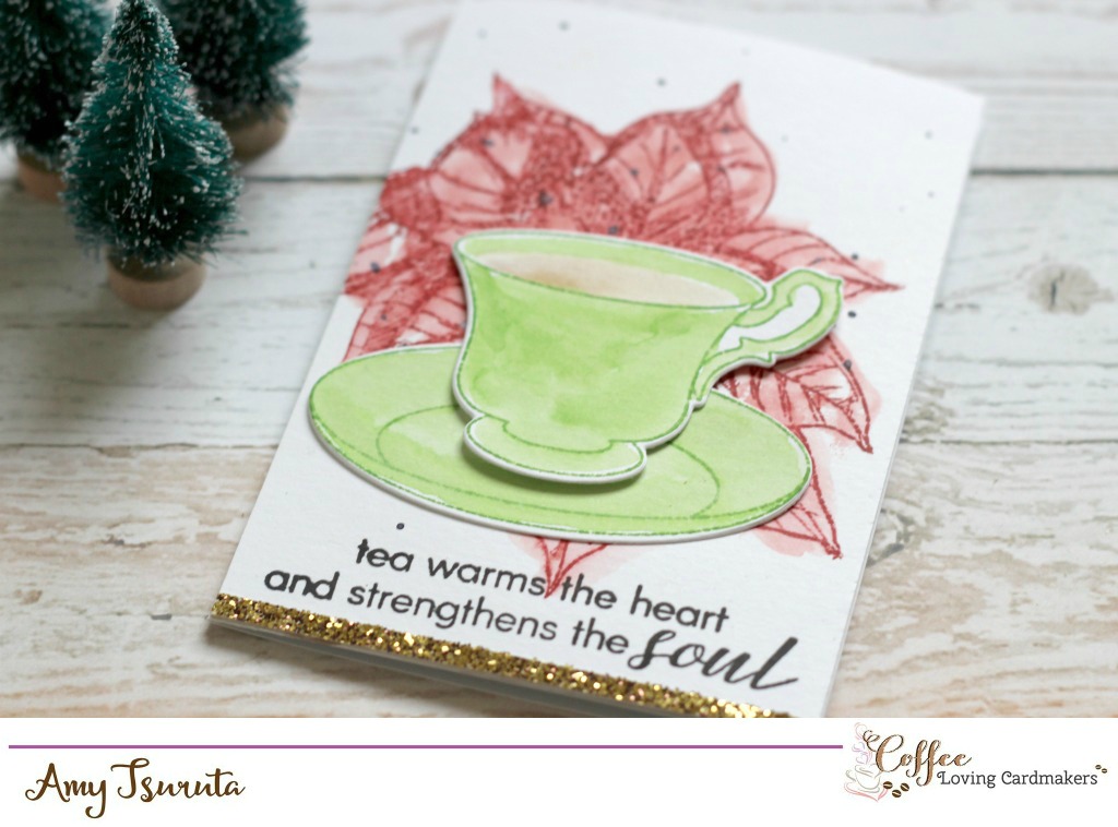 Beautiful card Amy! I love the coloring of the tea cup and the gold along the bottom too. That is a really lovely touch of elegance.