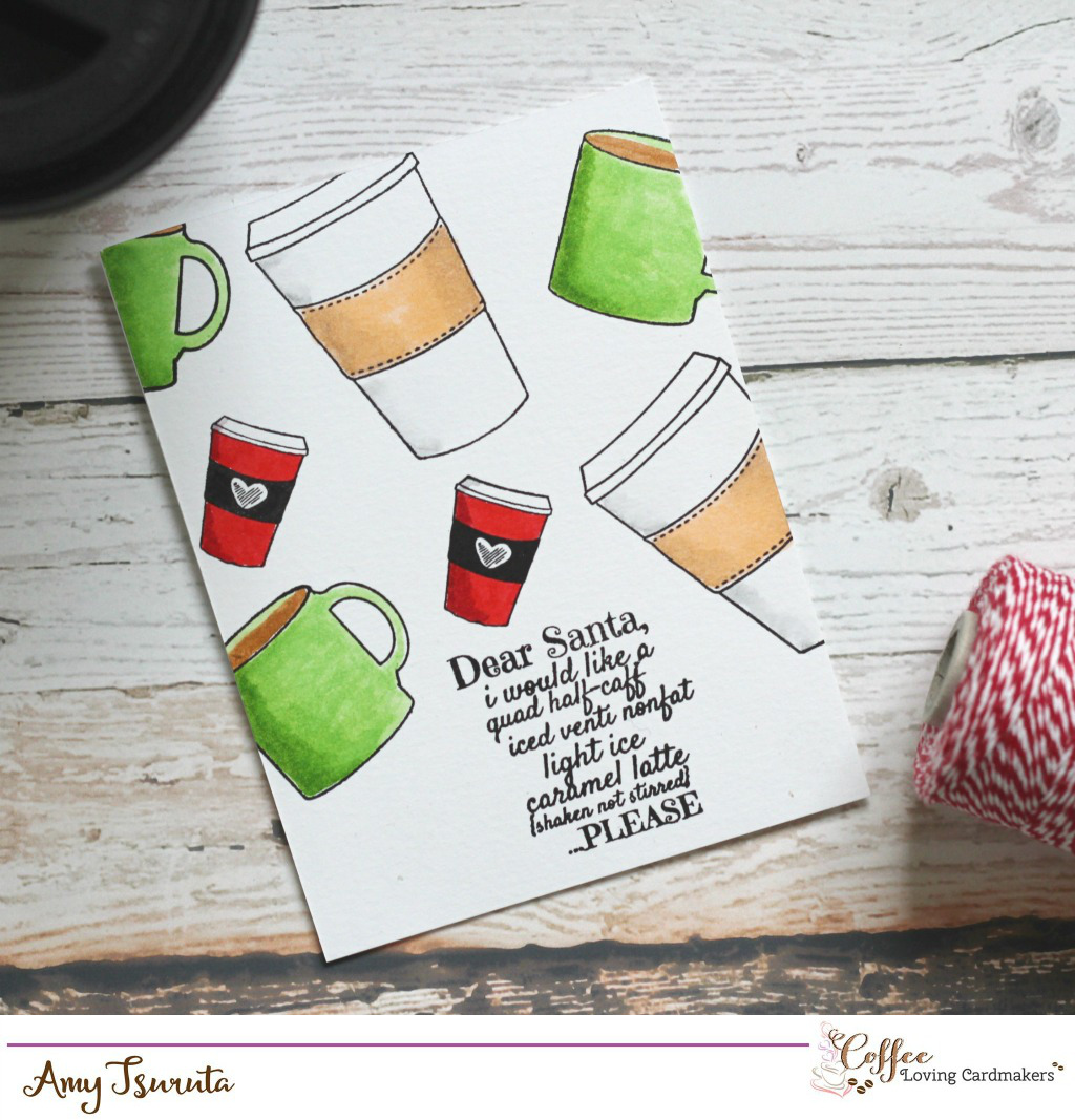 That sentiment is so fun! I really like how you colored your coffee cups! This is such a cute Christmas card!