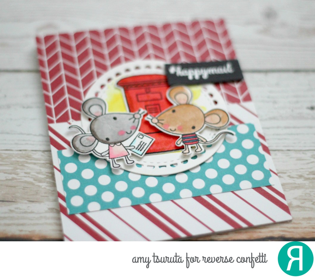 I love the mix of patterned papers you used with your sweet mice, Amy, such a cute card!