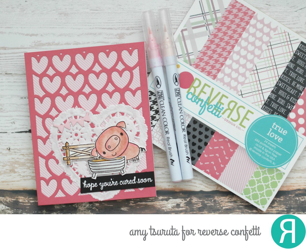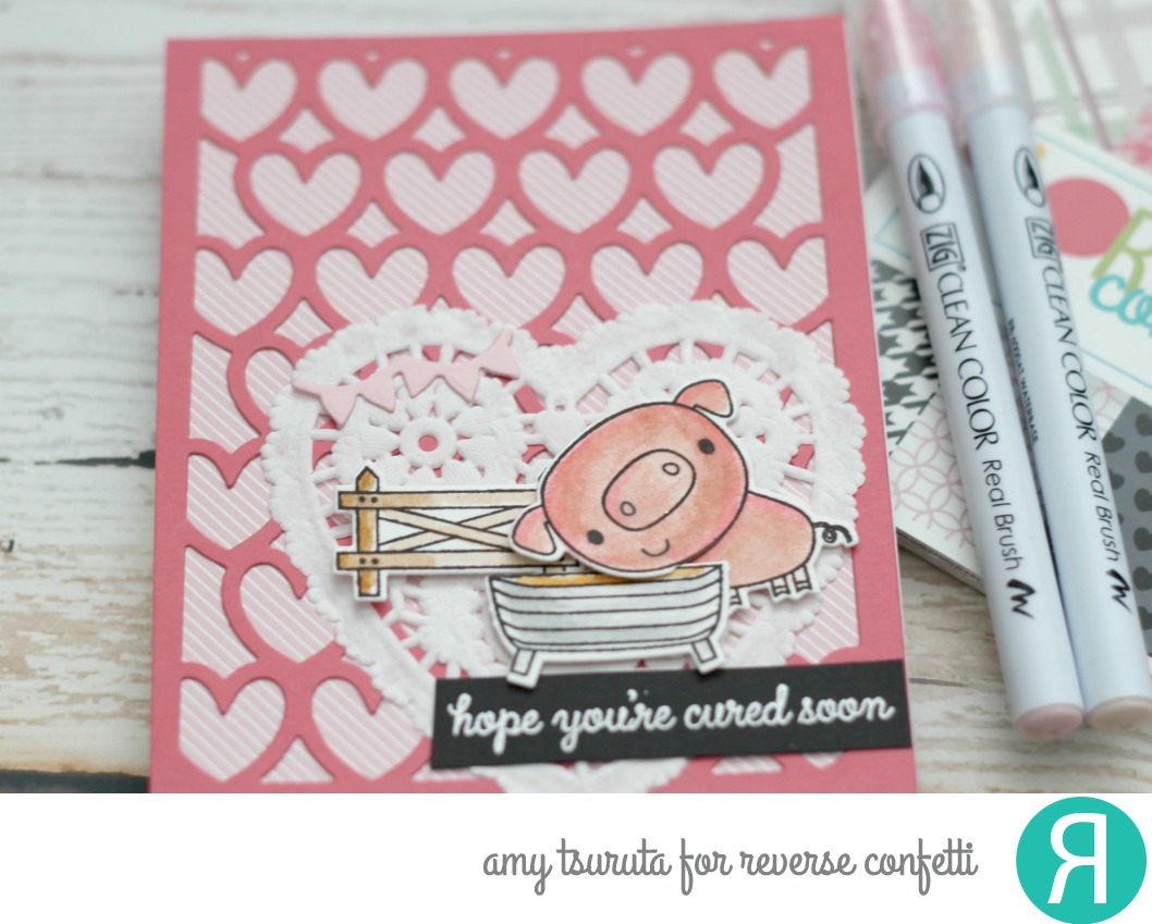 I am so in love with the new All Hearts Cover Panel! It looks so great as the background on your card! The new little piggies are absolutely adorable!!