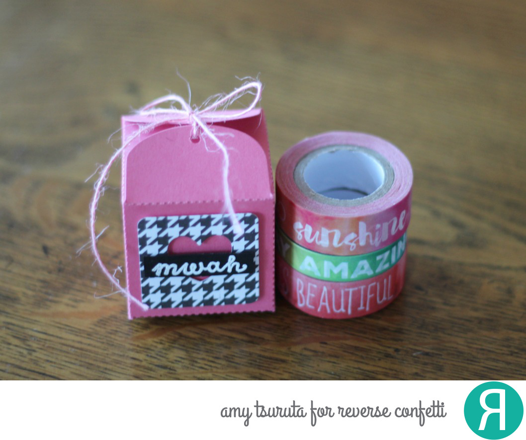 Very sweet card! Love how the washi tape fits perfectly into the little treat box!