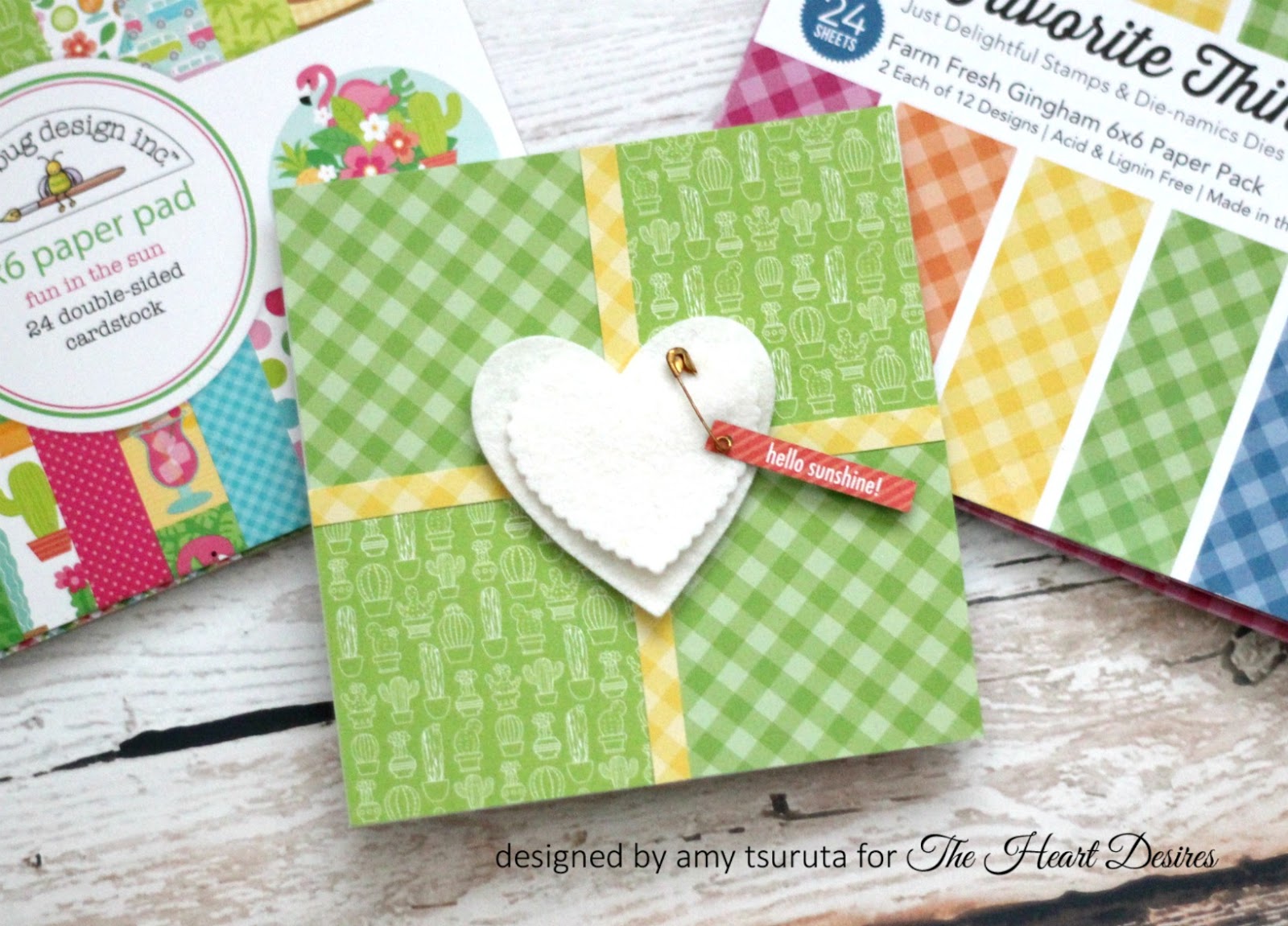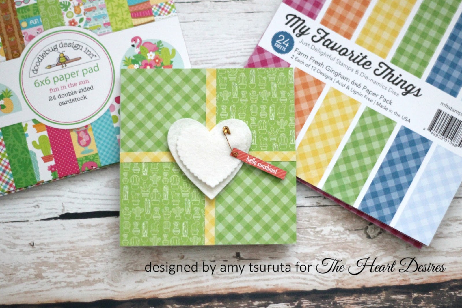 Confession: I have a TON of 6×6 paper pads so today I decided to focus on those for my project. I was able to combine the My Favorite Things – Farm Fresh Gingham with the Doodlebug Design – Fun in the Sun 6×6 Paper Pads.