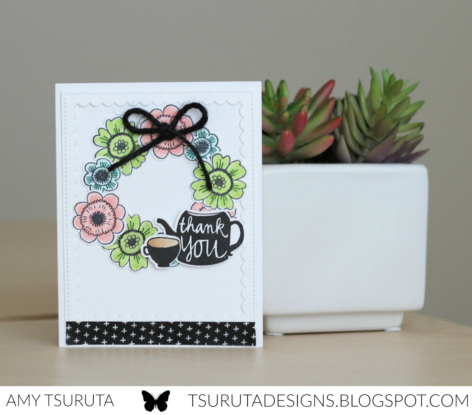 I love wreaths, I love coffee, I love flowers. This is just perfect! Love the black accent paper at the bottom, too.