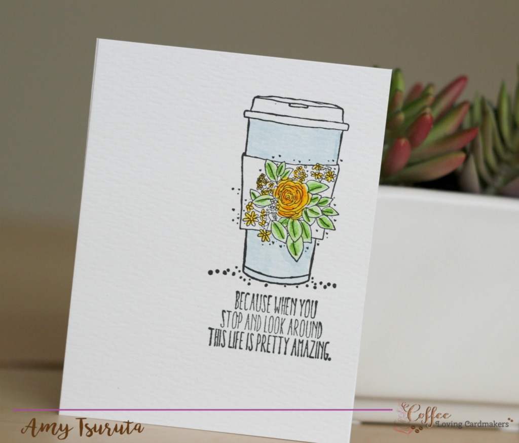 Whew! I can’t believe that the Spring Coffee Lovers Blog Hop is over. I’m SUPER excited to announce that we broke records, we had 67 Super Sponsors and a final count of 1,178 linkies! CRAZY! Can you believe that I’m back with another coffee card?! I was chatting with my friend, Erin Thiem, who broke her personal record with a fabulous 46 entries. We don’t ever tire of whipping up coffee card designs.