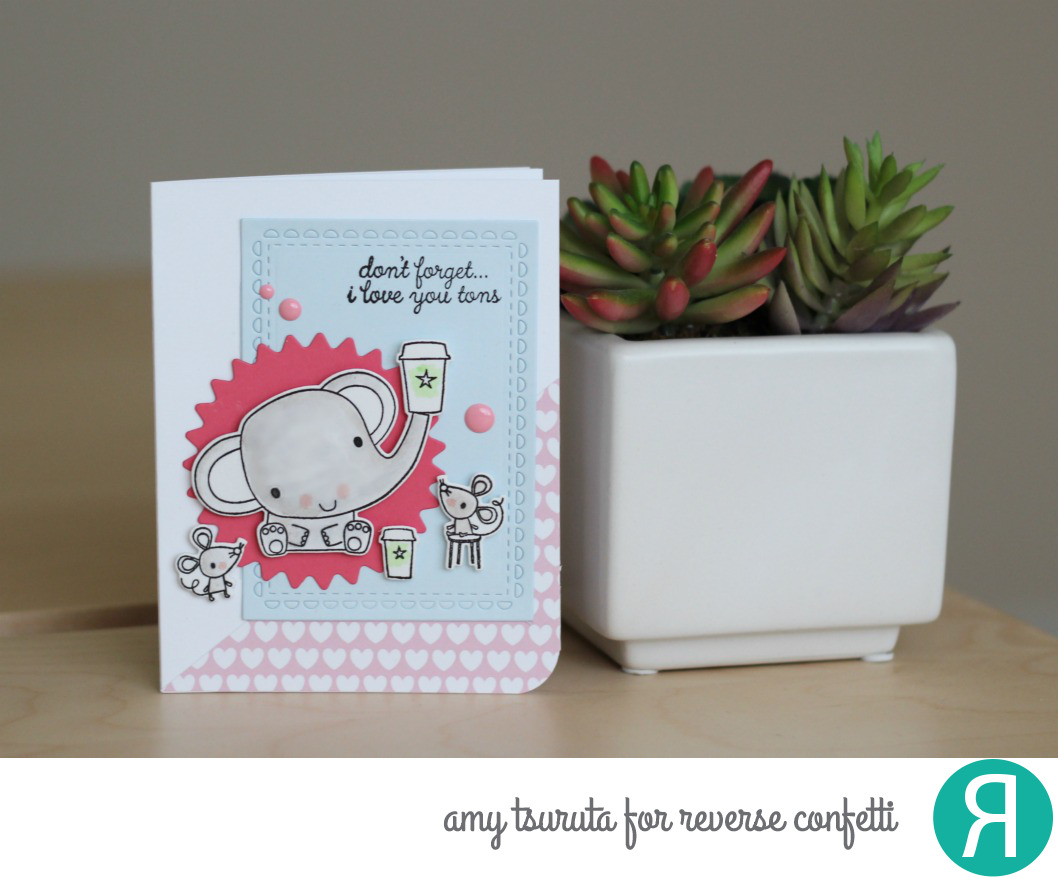 Decided u r my favorite trouble maker Amy! Saw yr Hero Arts page and ordered their monthly kit. Lol. Also, love the array of cards and most of all, love yr elephant Love You Tons card. Sooooooooo cute.