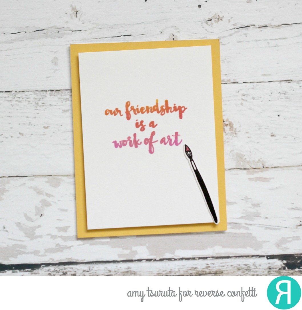 This is a must have for all you crafty peeps. Such a great set! I inked up the sentiment with the Hero Arts Ombre Spring Brights ink pad. I kept the design super clean and crisp so that the focus is on the sentiment. The paintbrush has been stamped in midnight and die cut out, love how it goes off the white panel just a smidge.