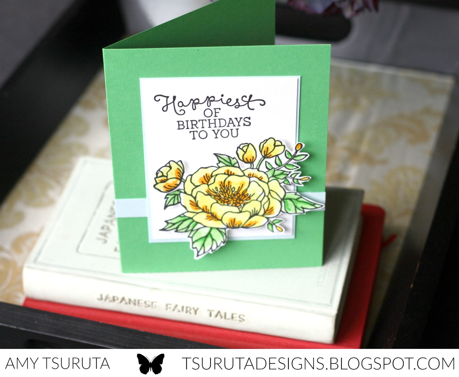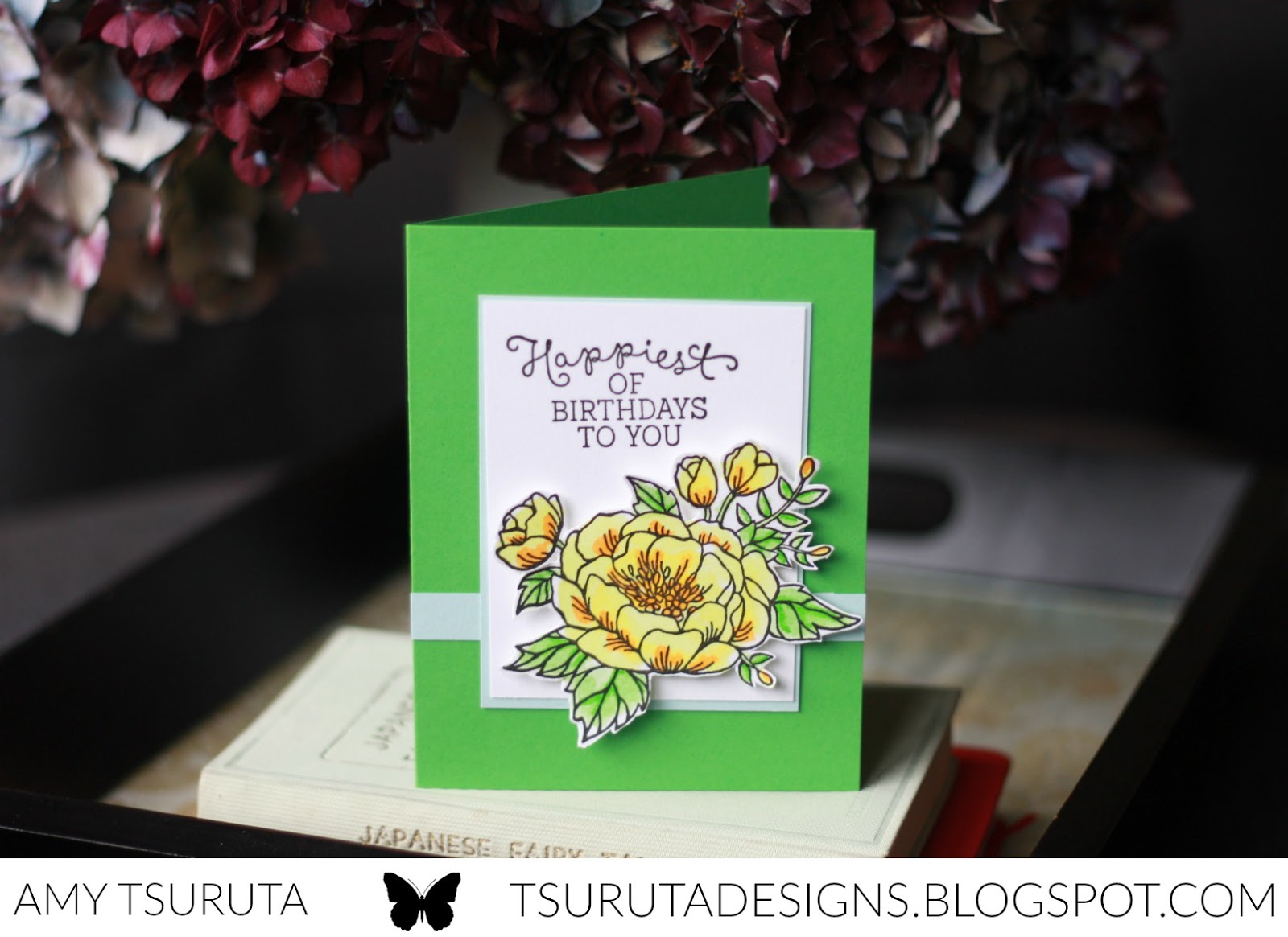 Wow! This is SO gorgeous, Amy! I absolutely love that sweet flower, and you have colored it so beautifully! And what a stunning color combo! That bright yellow and green absolutely pops!
