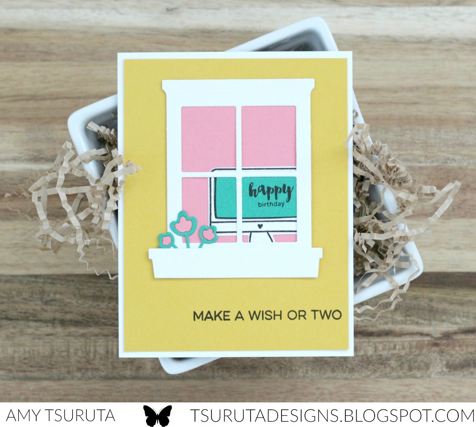 I combined it with Stampin’ Up Crushed Curry and their Hearth & Home Thinlets. The computer monitor and Happy Birthday Sentiment are from Mama Elephant: Blogging Buddies + Mini Messages. The Make a Wish is by MFT, More Essential Sentiments.