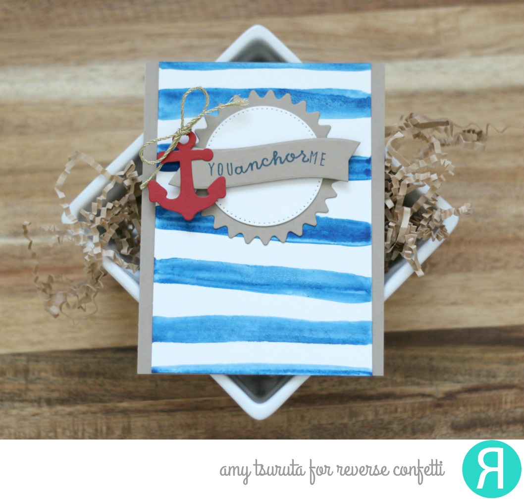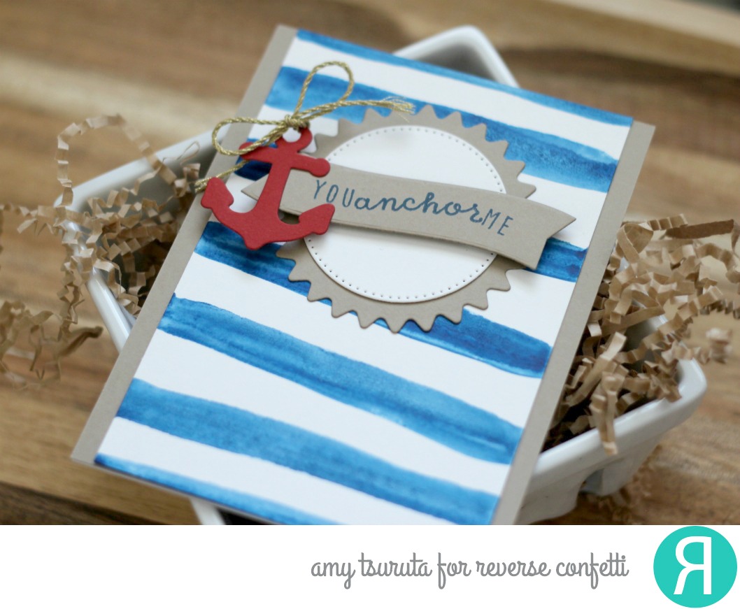 I love those watercolor stripes ! Perfect for your nautical themed card Amy! That little bow on the anchor is the cherry on top!