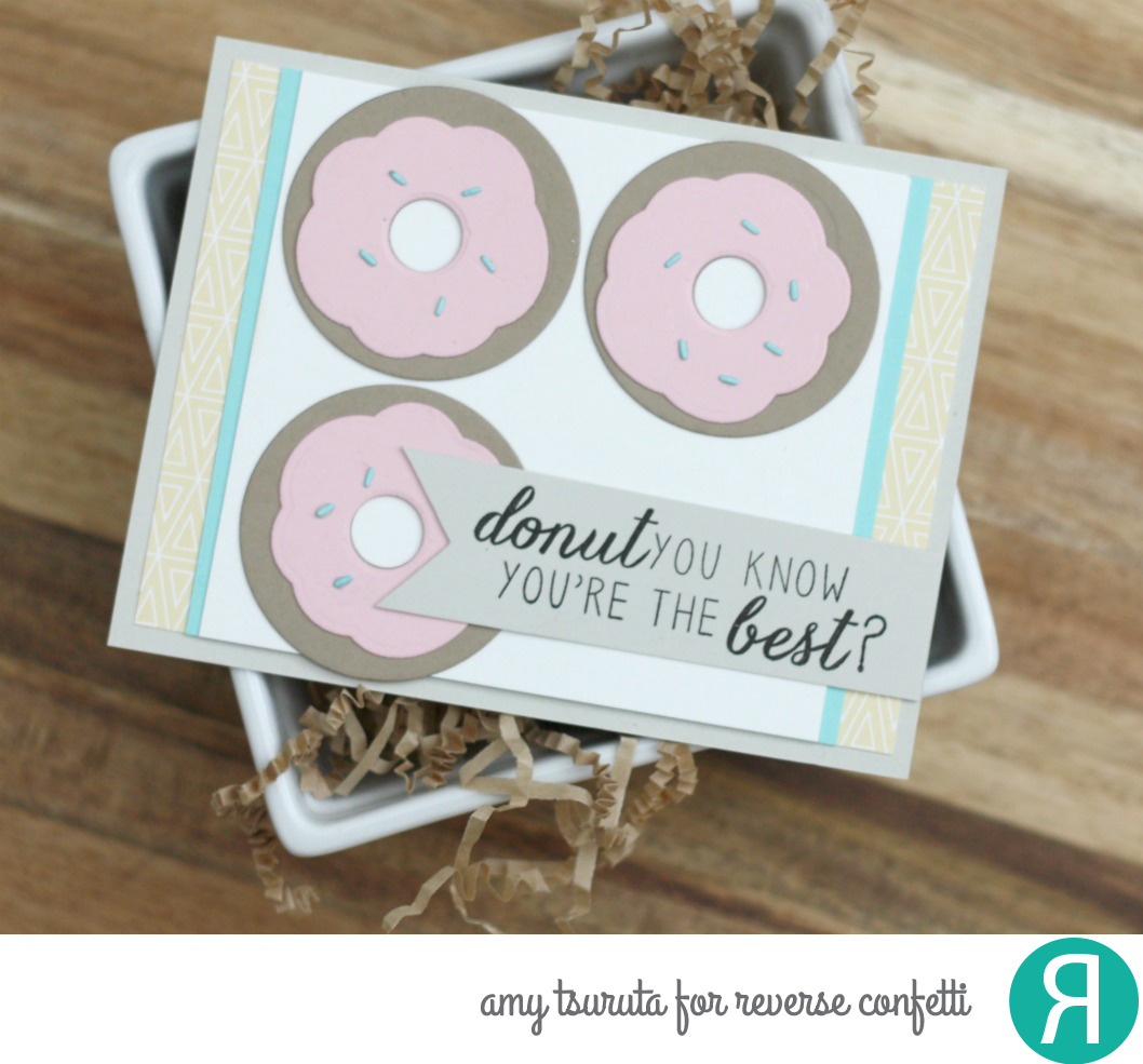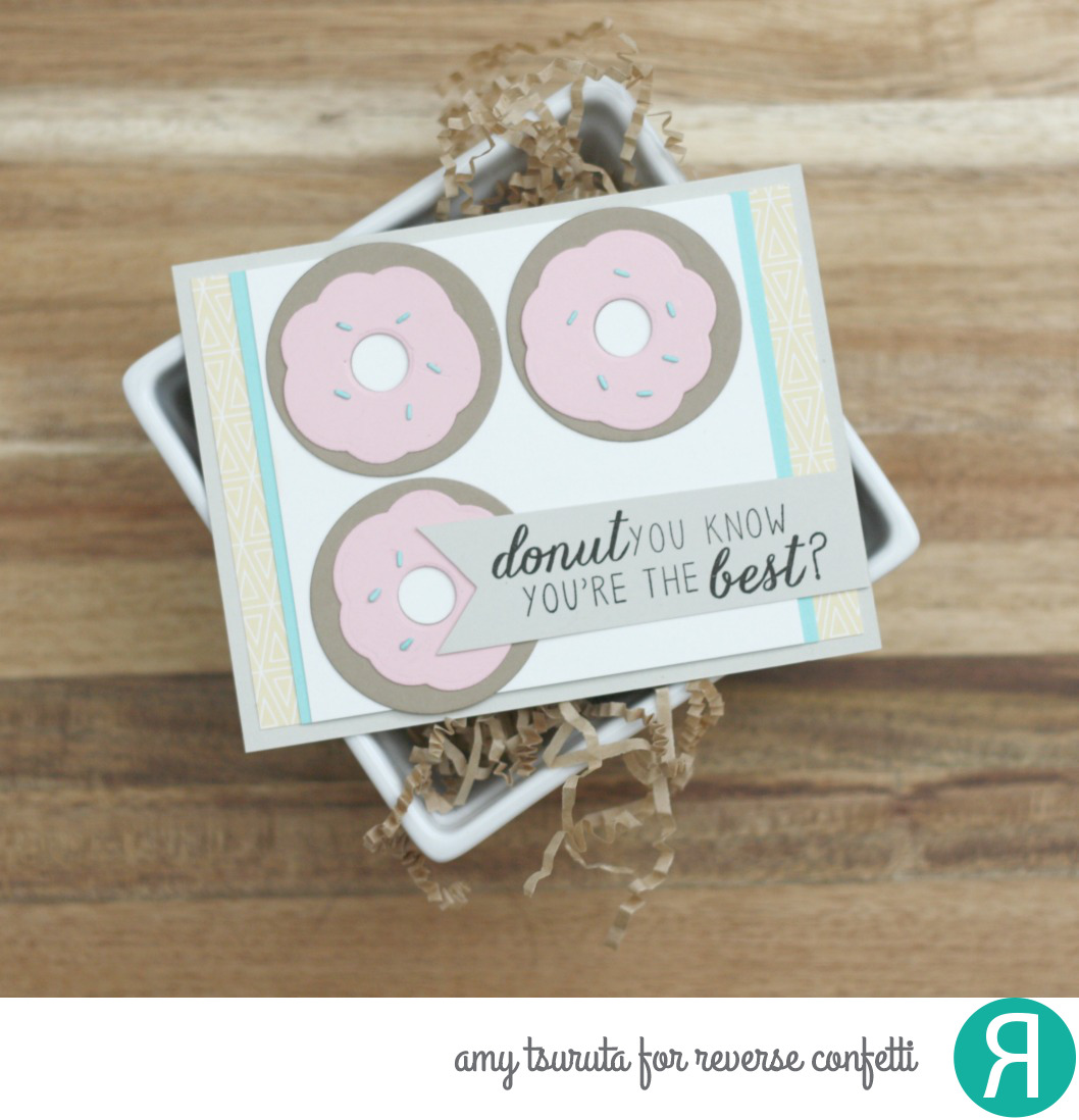 Happy National Doughnut Day! (Doughnut vs Donut) I whipped up a card using the Reverse Confetti Donut You Know stamps + coordinating confetti cuts.