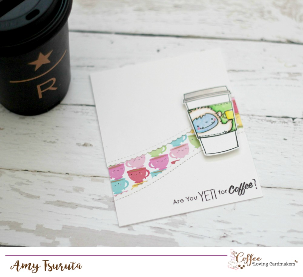 I just love this adorable CAS card Amy, the yeti, the sentiment, all the coffee cups in the back, great design!