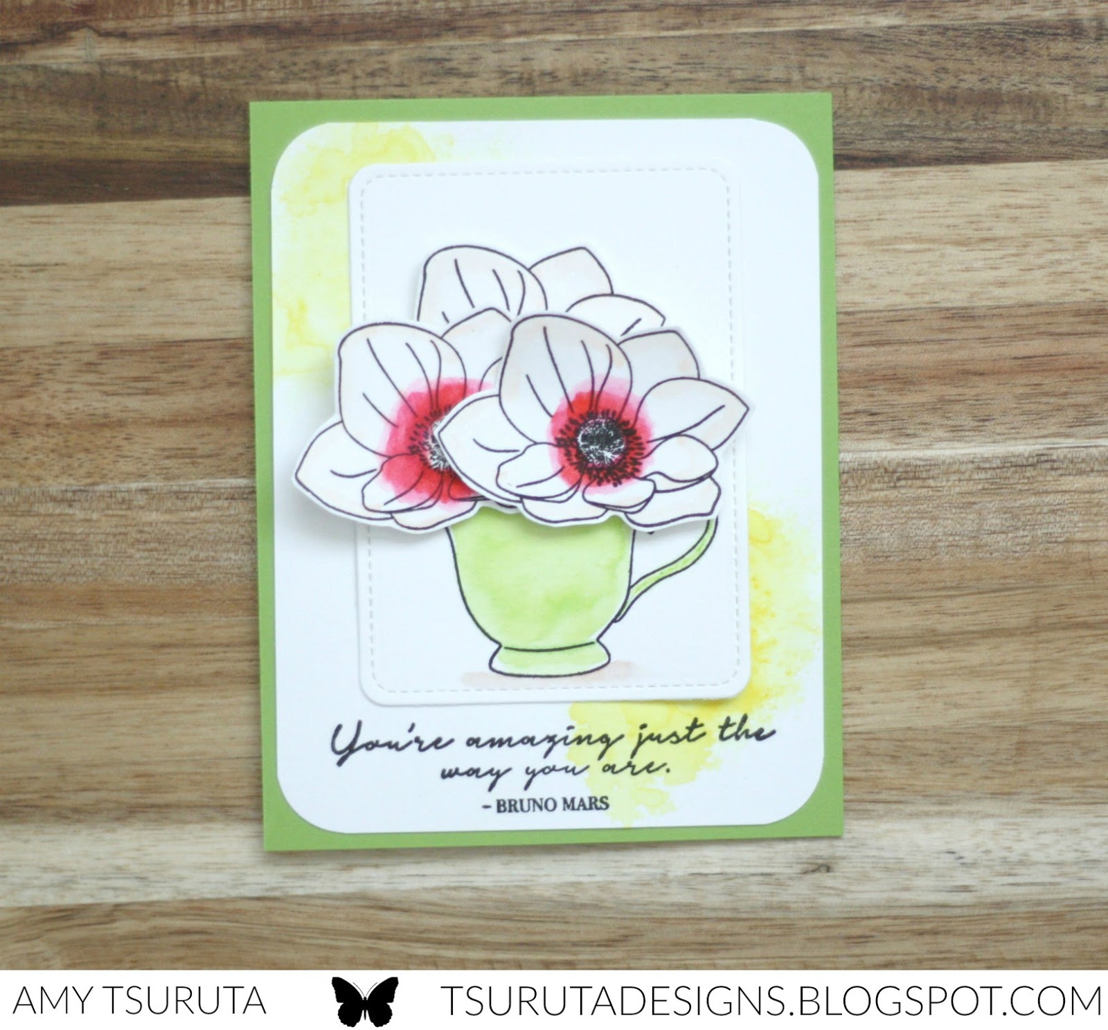 I loved your teacup card but when I saw the Bruno Mars quote………….totally sold on the stamp set.