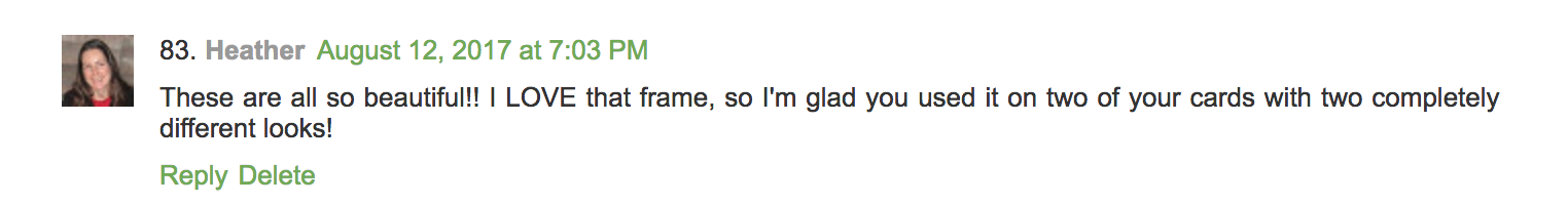 Oh my goodness, thank you so much for the wonderful comments you left on my Altenew New Day Card Kit Blog Hop post! I truly appreciate the time you took to check out my projects and leave me a little note!