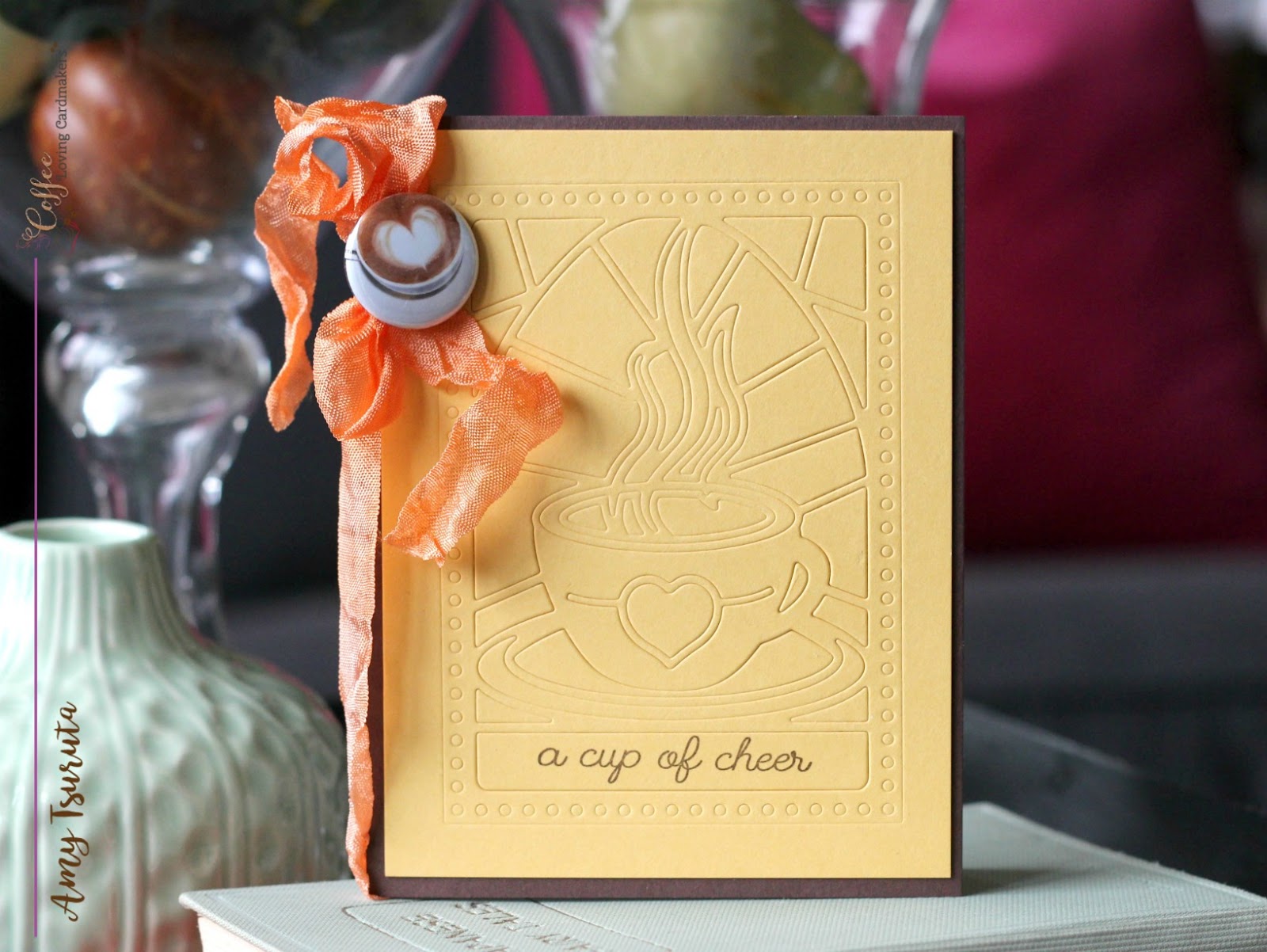 I used the a jillian vance design Grandpa’s Glass: Cup of Love die with my embossing pads. I love the look when I do this technique. The sentiment is from the coordinating stamp set, Perk Up.