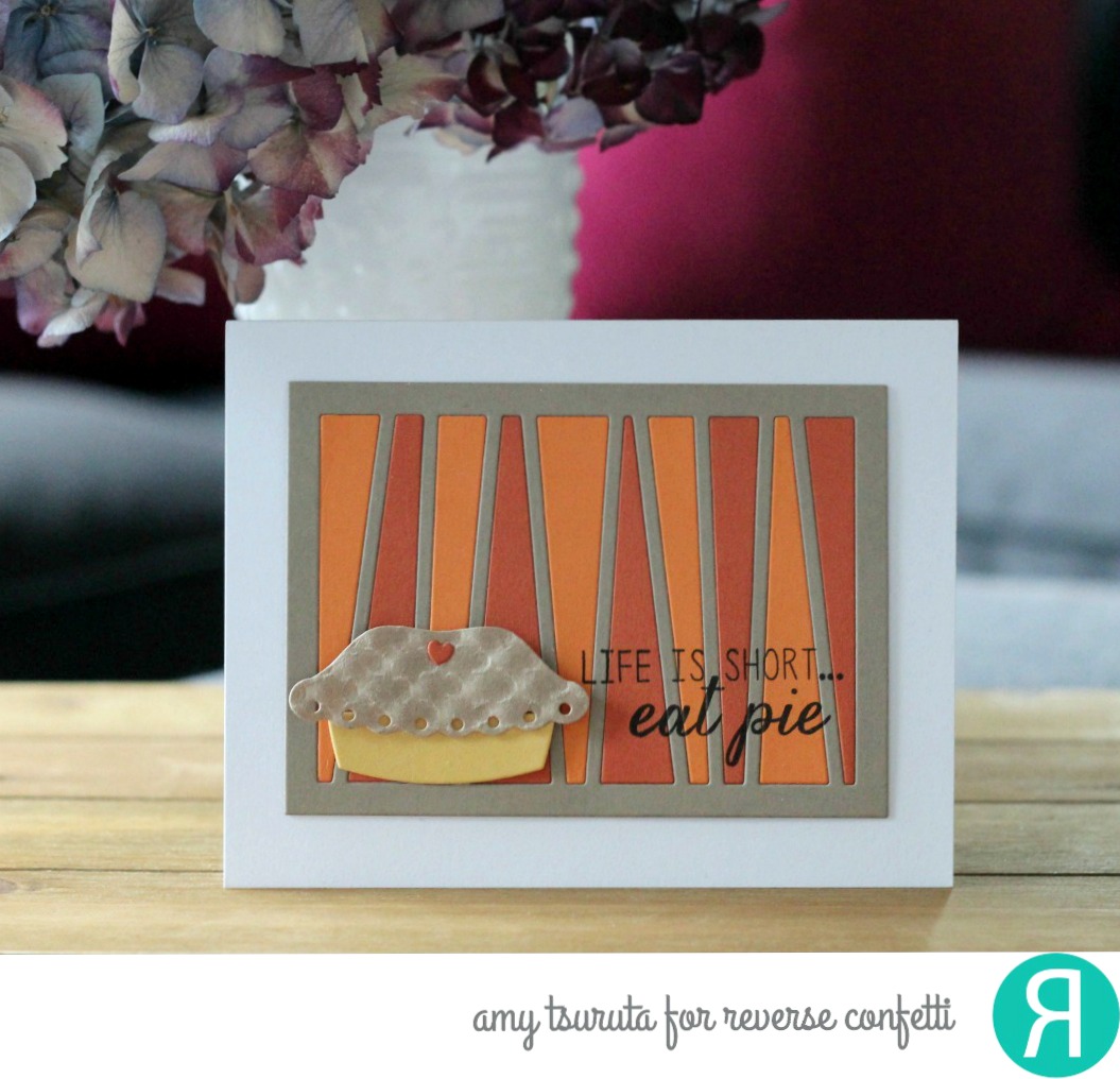 Love the Wonky Stripe Panel. The sentiment is from Easy as Pie and the pie is the coordinating confetti cuts. The top of the pie is Reverse Confetti