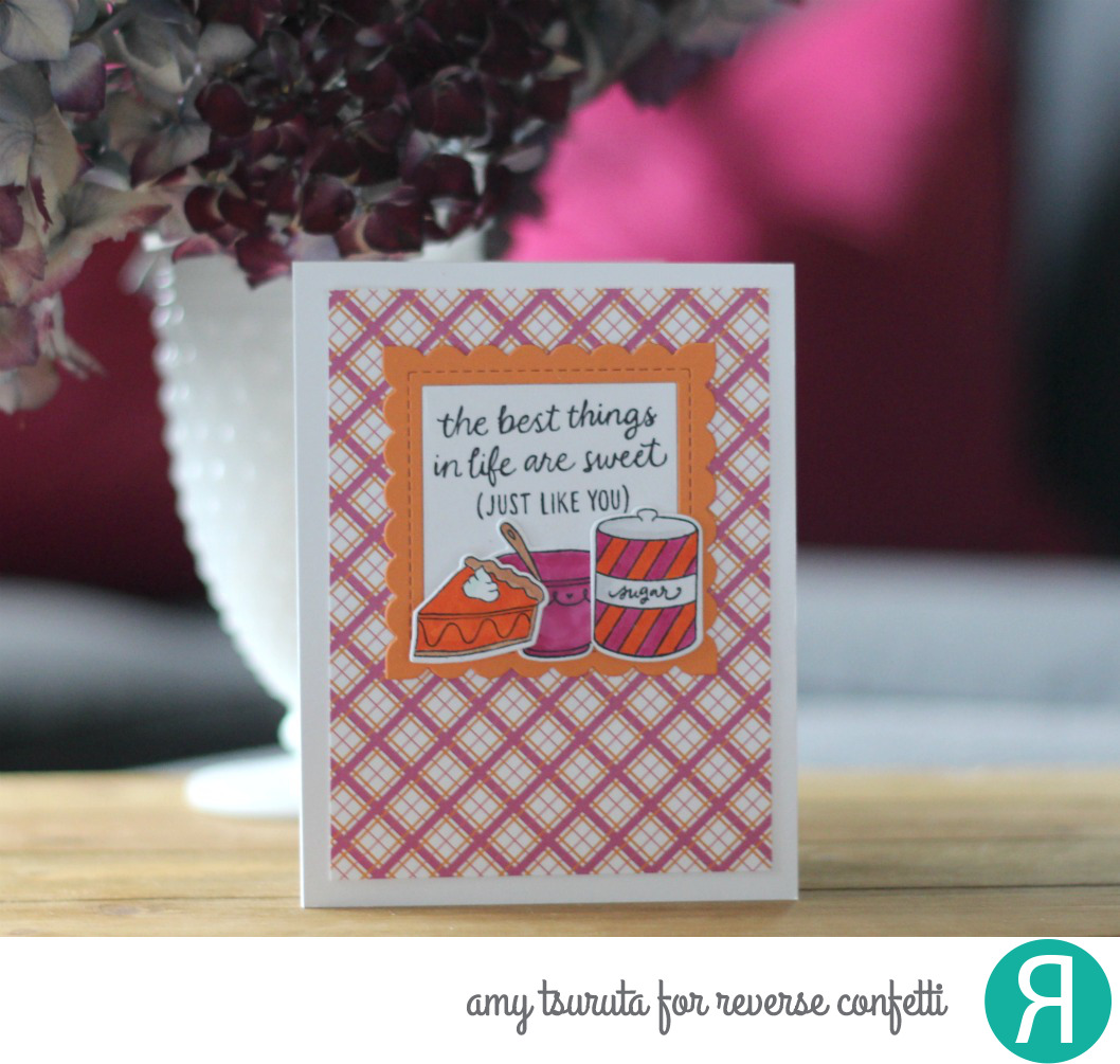 I have two projects to share with you, first up is a card that features Kitchen Love stamps + coordinating confetti cuts.
