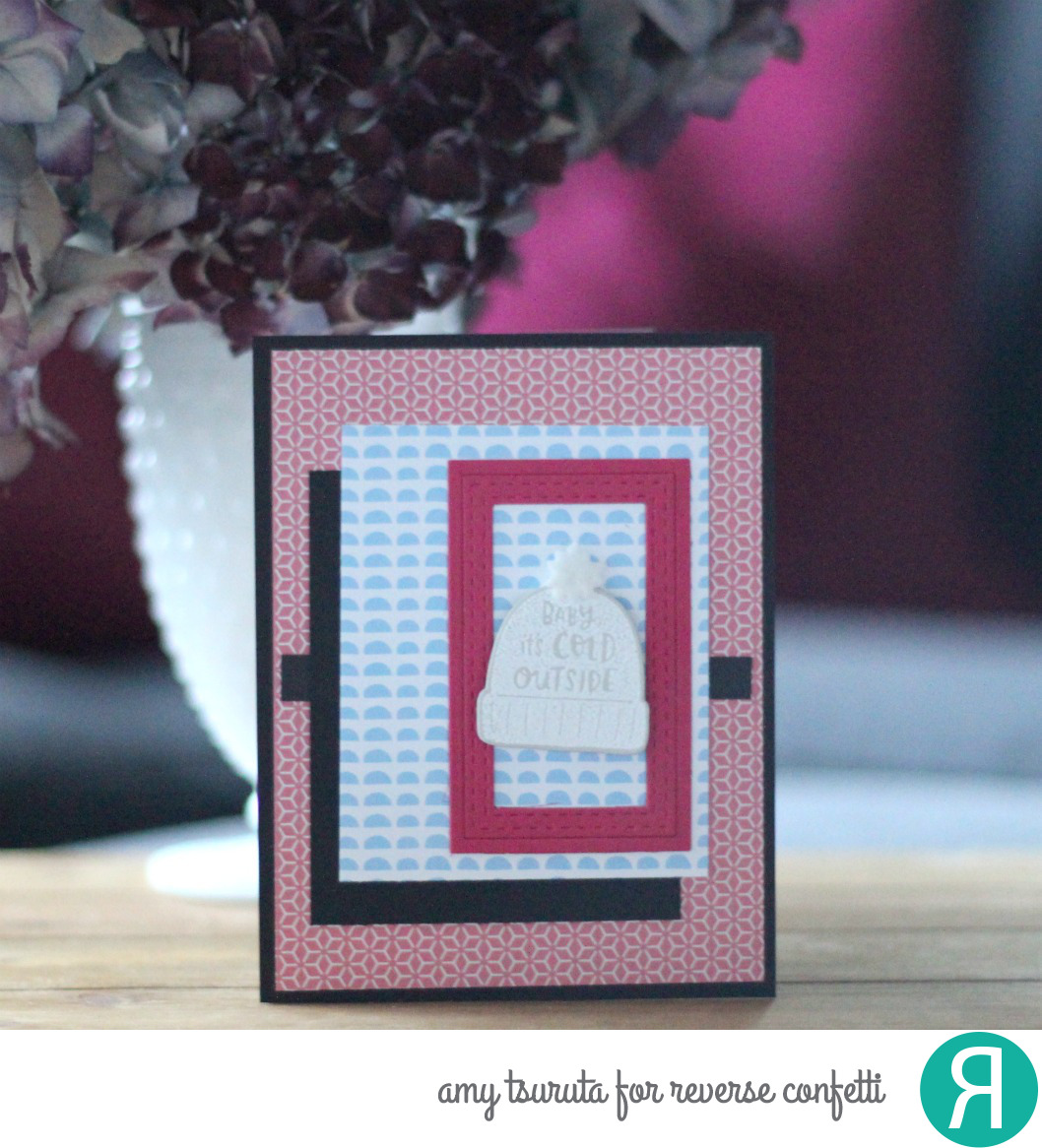 Super cute! Love the hats and snowflakes and matching dies. Your colors, patterns, and design are great. Love it!