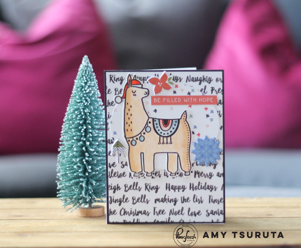 That Llama is Soooooo cute Amy, especially with the little bells around its neck and the jingle bells font paper. Love it!