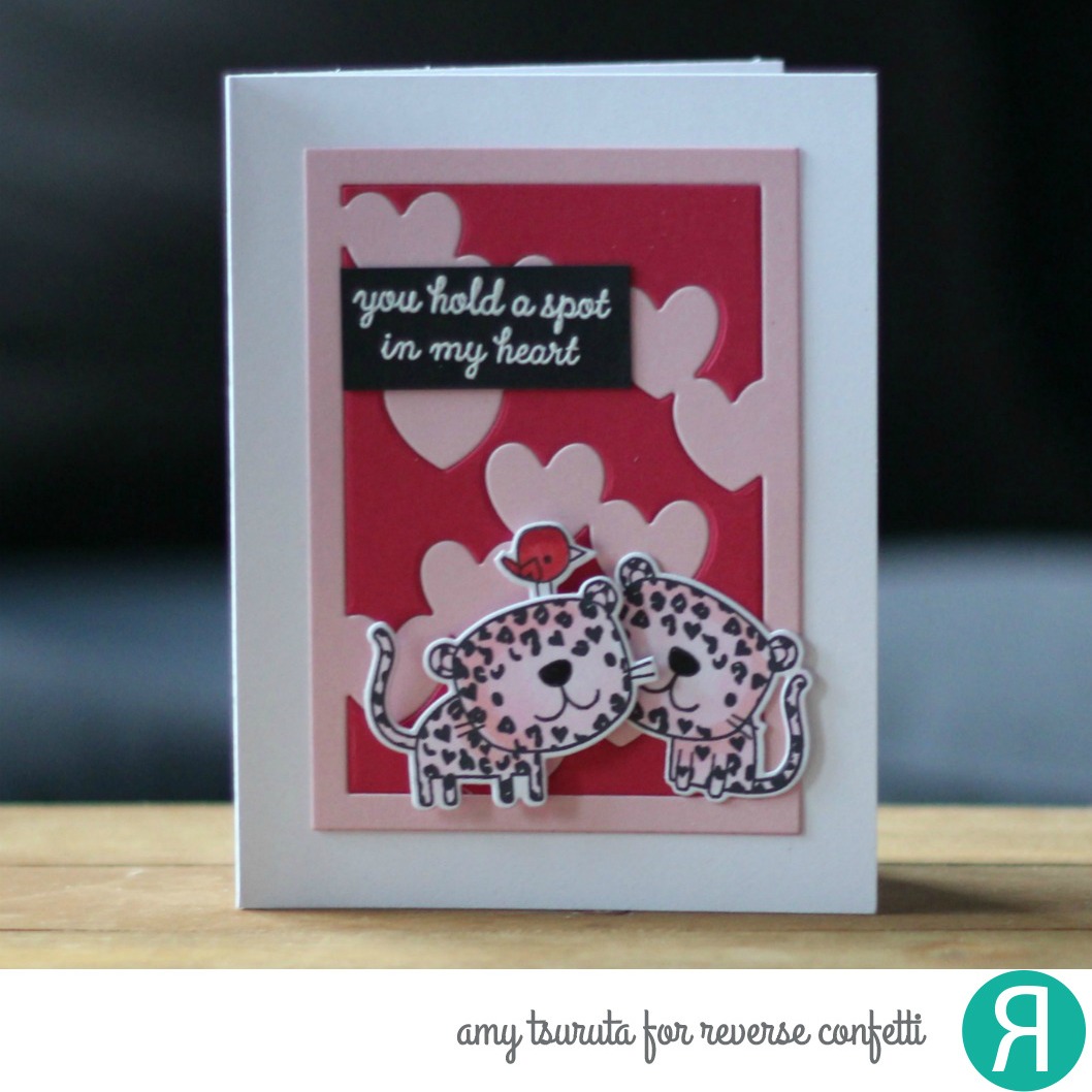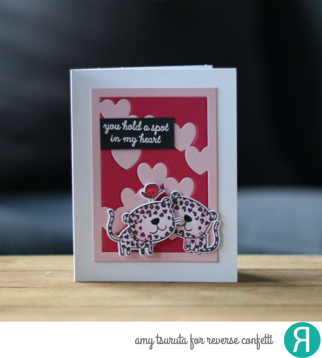 LOVE that falling hearts panel (can't wait to get my hands on that die!) and your pink shading of the cheetah is so adorable!