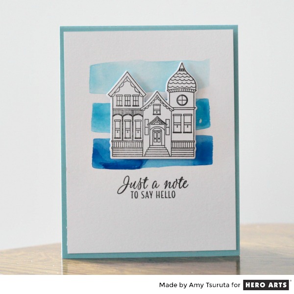 Hello and Happy Friday! I’m up on the Hero Arts blog today but before you pop over there I did have another card to share here on my blog. I made this card for a class I taught at Impress Cards + Crafts. It features the House Stamp & Cut set.