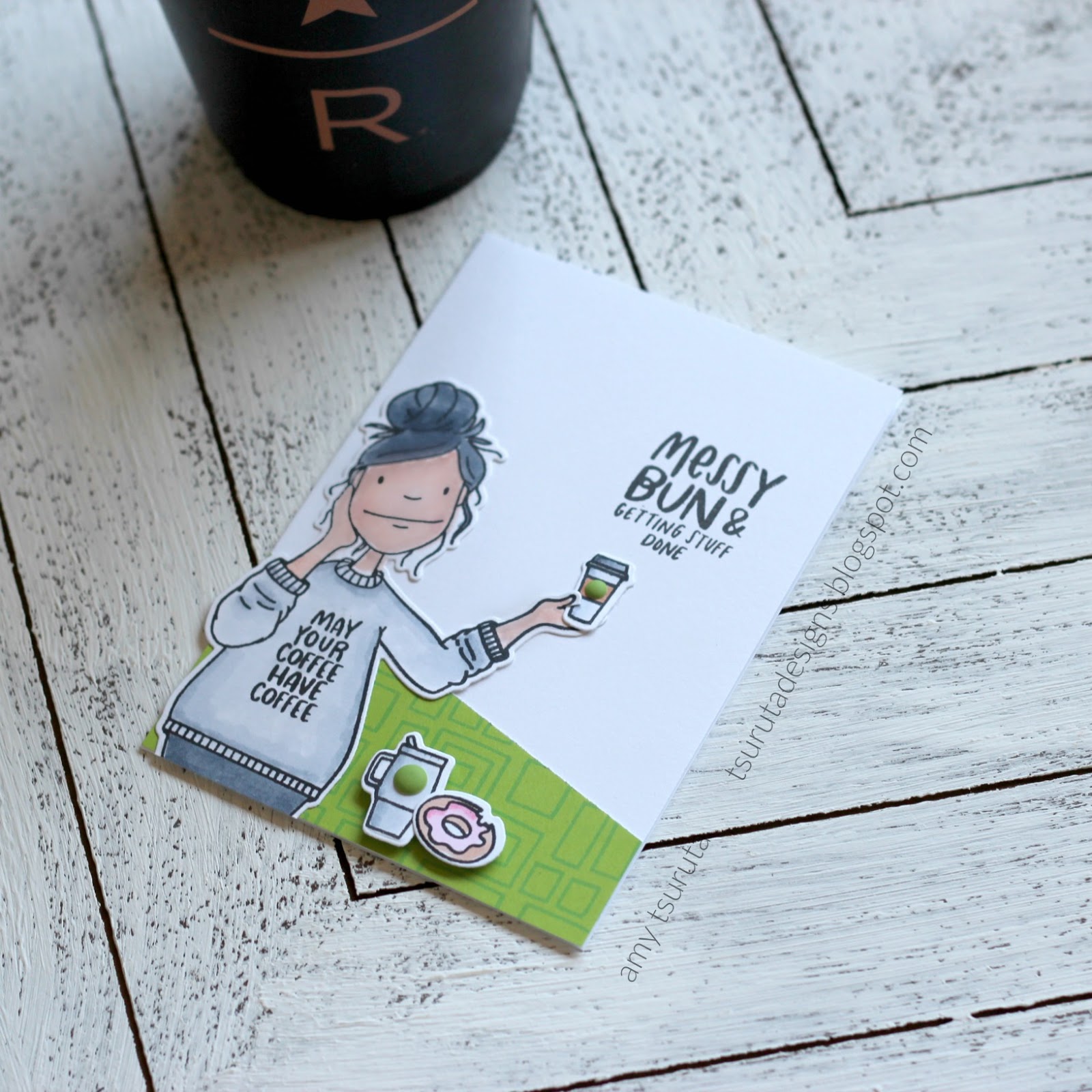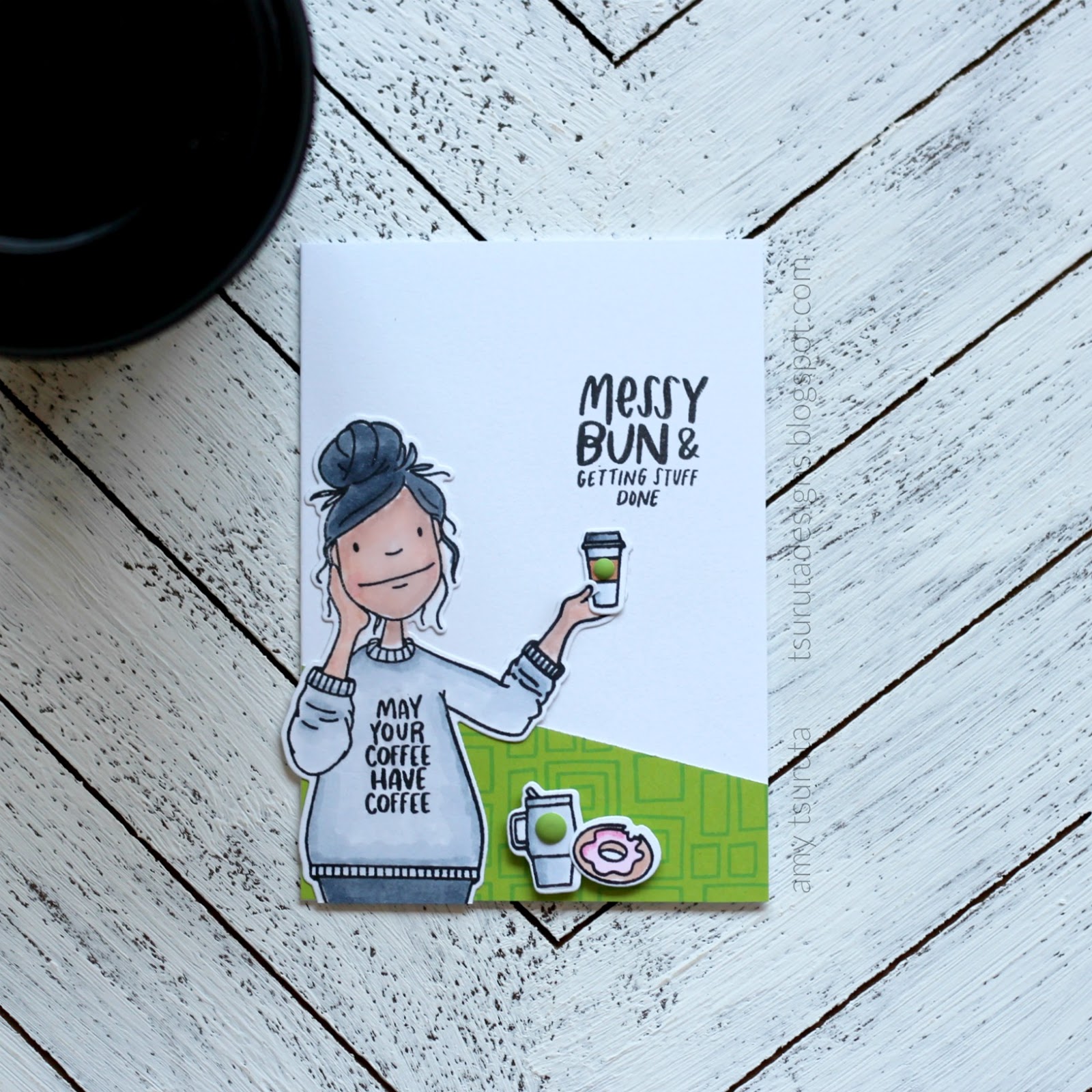 Eeep! So cute! Love the monotone grays paired with your green, and of course, the coffee theme! Great take on the sketch, too!