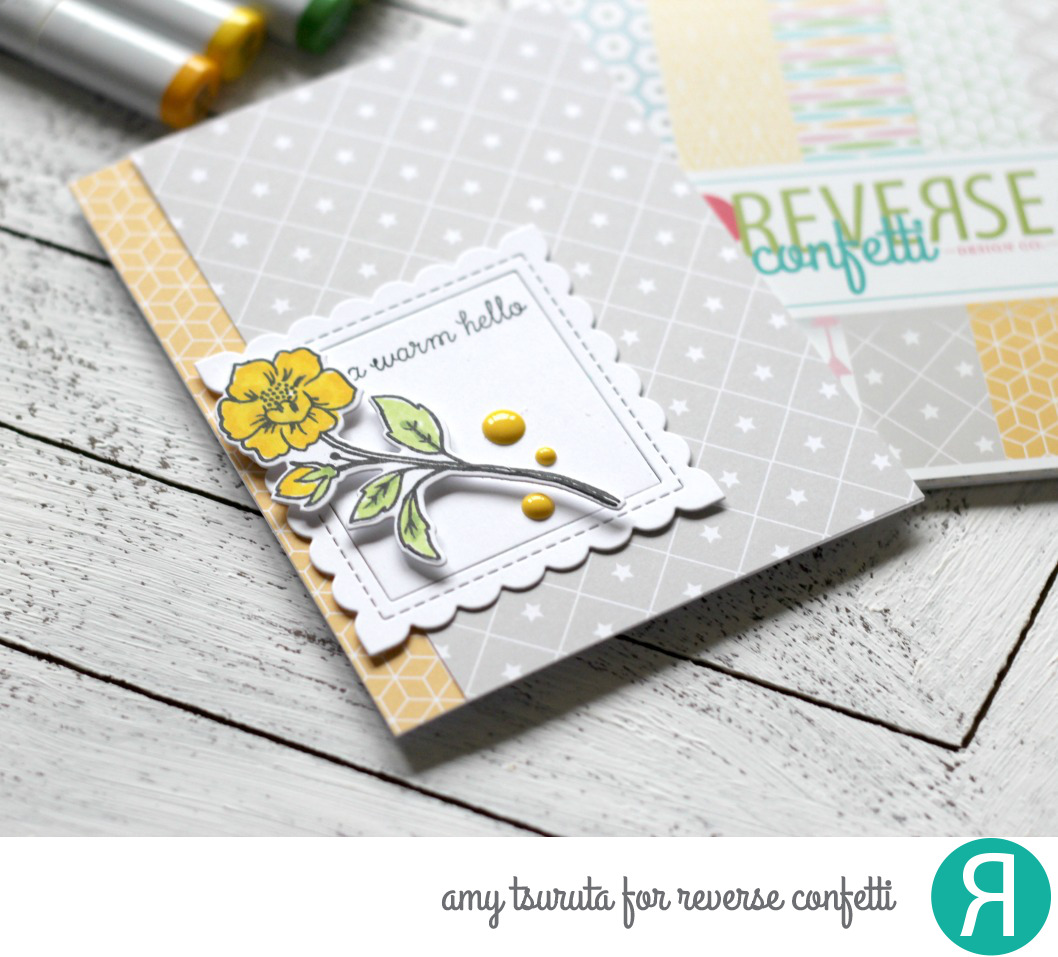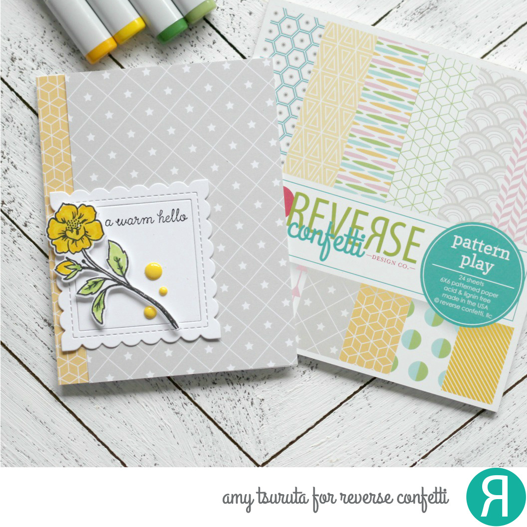 The Reverse Confetti Pattern Play 6×6 such a beautiful collection of papers! I teamed it up with Tall Blooms and Scalloped Squares.