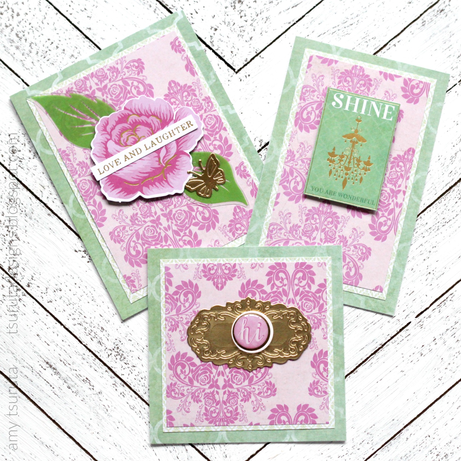 The die cuts in this kit are amazing, the gold detailing is absolutely perfect. I’m a big fan of chandeliers so I knew I had to use this one. Foam dimensionals are included in the kit along with adhesive.