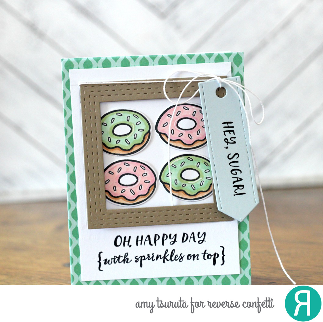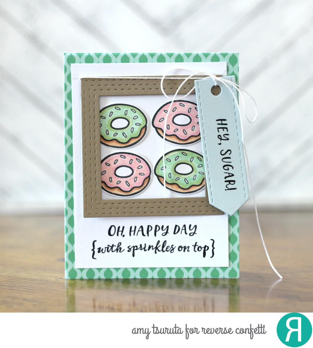 Donuts! Oh my goodness, I adore the Hey Sugar set! I combined it with the Stitched Squares confetti cuts.